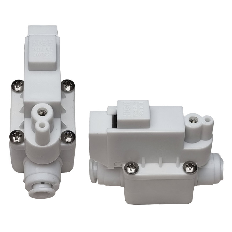 در دستگاه های تصفیه آب خانگی ، از 2 عدد سنسور یا سوئیچ استفاده می شود که وظیفه سنجش فشار آب و اجرای فرامین روشن و خاموش شدن دستگاه را به عهده دارند . از آنجا که این دو سنسور فشار ، به صورت یک کلید قطع و وصل عمل میکنند ، لذا نامگذاری سوئیچ برای آنها رایج است و درواقع نوعی سوئیچ یا کلید محسوب می شوند . زمانی که مخزن دستگاه پر می شود و فشار درون آن بالا می رود ، سنسور فشار بالا این فشار بالا را تشخیص می دهد و دستگاه را خاموش می کند . با مصرف کردن آب مخزن ، این فشار کاهش می یابد و سنسور مجددا پایین رفتن فشار را تشخیص داده و دستور روشن شدن دستگاه را میدهد . خاموش و روشن شدن منظم دستگاه ، به سنسور فشار بالا وابسطه است و اگر مشاهده کردید که دستگاه منطقی روشن و خاموش نمی شود ، این سوئیچ دارای دو سرفیتینگ می باشد نیاز به اتصالات دیگری ندارد.