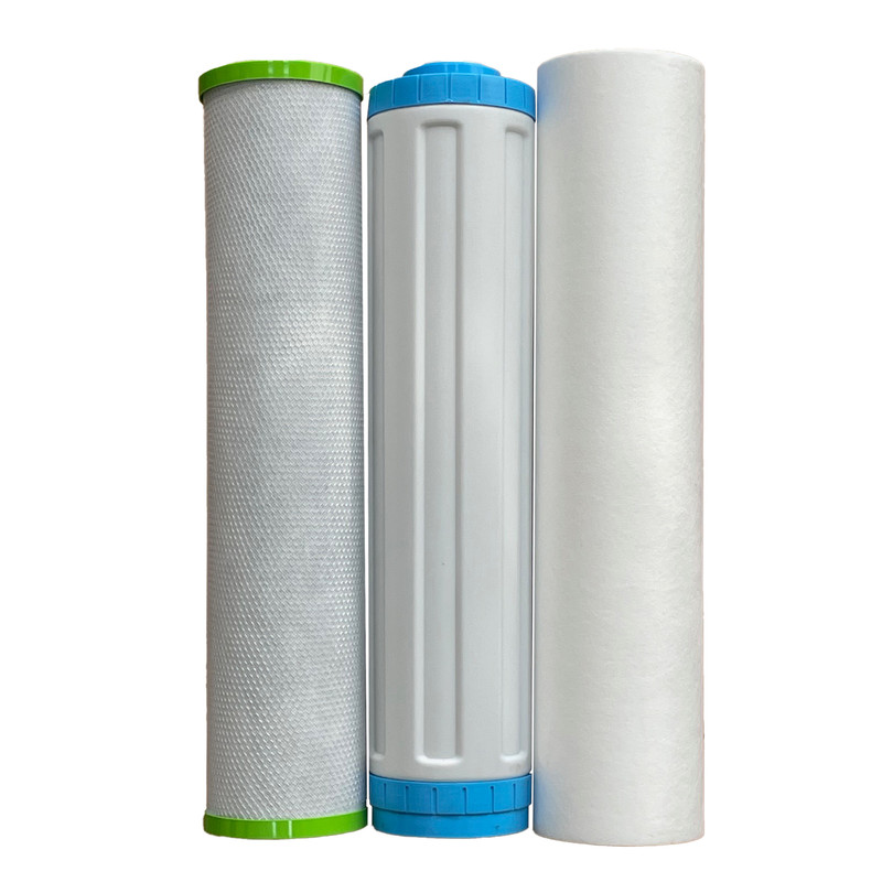 فیلتر پیش تصفیه آب سه عددی الیافی، کربن اکتیو و کربن بلاک 20 اینچ در هوزینگ های جامبو ( 20 اینچ ) به کار میرود که به جهت کاهش گل و لای ، کلر آب ، مزه و طعم ، بوی نامطلوب آب ، میکرو ارگانیزم ها و رنگ آب استفاده می شود ، همچنین کربن اکتیو استفاده شده در آن 100% گیاهی می باشد که نسبت به فیلترهای کربنی رایج دیگر که از کربن زغال سنگ (آنتراسیت) استفاده می کنند سالمتر و با کیفیت تر می باشد ، کربن فعال به کار رفته در این فیلتر از جنس زغال پوست پسته می باشد که طی مراحلی جهت بالا بردن میزان جذب ذرات تا عدد یدین 800 ( میلی گرم در یک گرم کربن ) اکتیو شده است