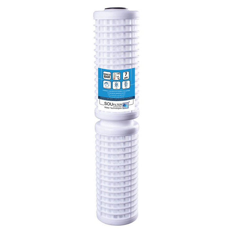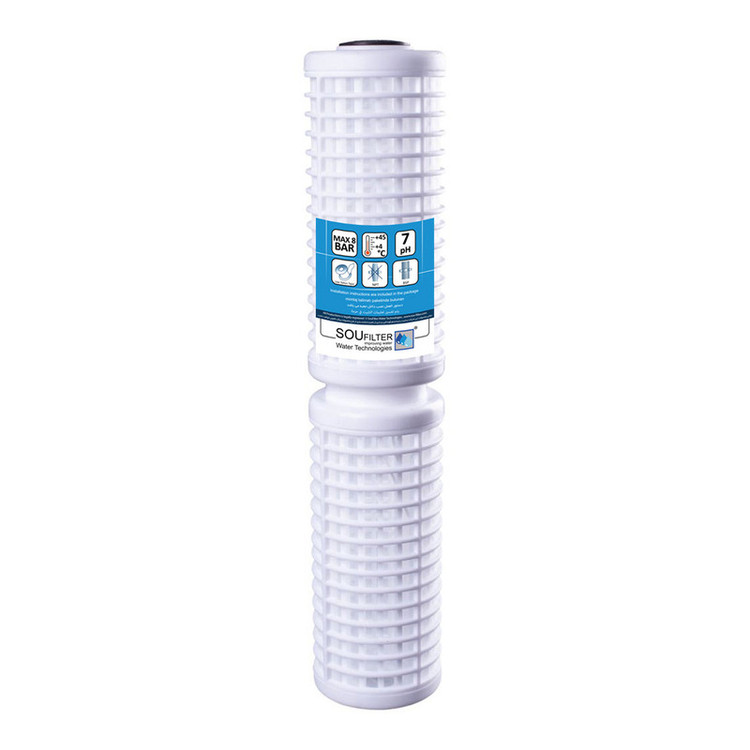 کارتریج فیلتر توری شن گیر جامبو20 اینچ جهت محفظه های استاندارد فیلتر تصفیه آب 20 اینچ جامبو طراحی شده و قابلیت حذف شن ، ماسه و ذرات ریز و معلق در آب تا اندازه 50 میکرون را دارا میباشد. همچنین این فیلتر ها قابلیت شستشو و استفاده مجدد را دارا هستند جهت شستشوی این فیلترا از مسواک استفاده شود و به ارامی زیر شیر آب روی فیلتر کشیده شود تا اسیبی به منافذ فیلتر وارد نشود