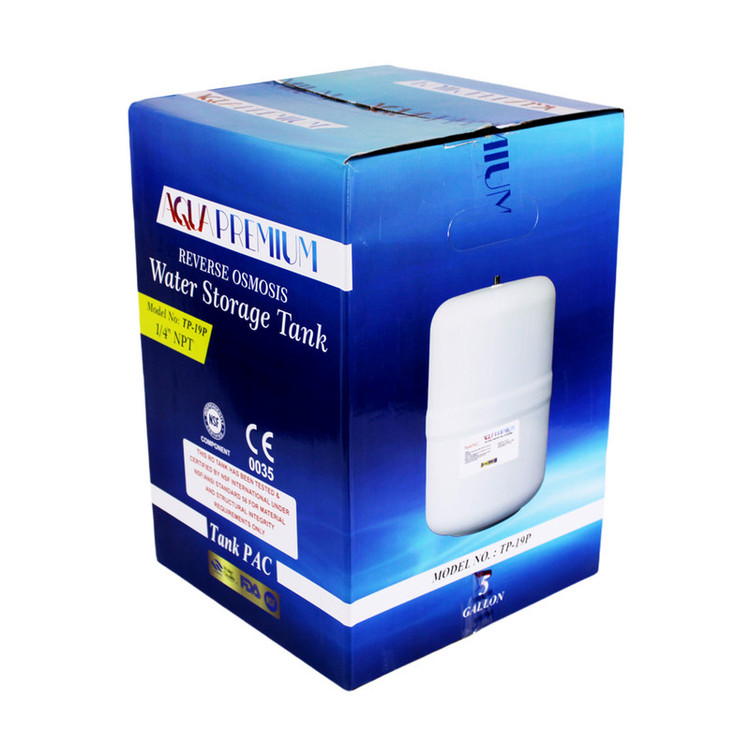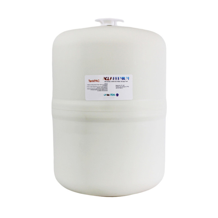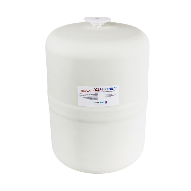 یکی از بهترین و محبوب ترین مخزن تصفیه آب موجود در دنیا ، مخزن تانک پک آکواپرمیوم میباشد. وظیفه اصلی مخزن ، ذخیره آب تصفیه شده و تامین فشار آب خروجی دستگاه میباشد که در نهایت آب ذخیره شده از طریق یک شیر روی سینک به مصرفکننده ارائه میدهد. بدنه منبع از جنس پلی اتیلن و در داخل منبع یک بالن پلاستیکی گذاشته شده است که فاصله بین بالن و بدنه از هوا پر شده است که زمانی که شیر برداشت باز میشود اب در اثر فشار هوایی که به بالن ایجاد میکند از مخزن خارج میشود. این مخزن با گنجایش 19لیتری (5 گالن) میباشد. ابعاد مخزن تانک پک 19 لیتری طول 28 و عرض 28 (قطر 28) و ارتفاع 41 سانتی متر میباشد.