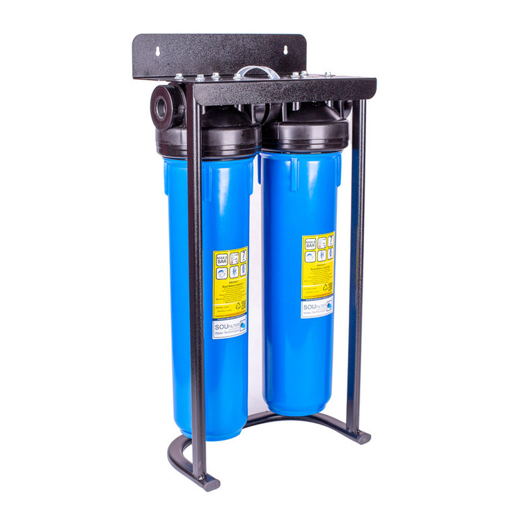 پیش تصفیه دو مرحله جامبو سوفیلتر به عنوان پیش تصفیه آب ساختمان یا ویلا بعد از کنتور آب در مسیر لوله آب قرار می گیرد و با استفاده از دو عدد فیلتر الیافی درون آن گل و لای ، شن و ماسه و ذرات معلق را تا اندازه 5 میکرون تصفیه می کند و این محصول به عنوان پیش تصفیه آب ساختمان، ویلا، کارگاه و هر جایی که نیاز به تصفیه ذرات معلق آب ورودی باشد به کار میرود. ارتفاع فیلتر درون این محصول 20 اینچ و پورت ورودی و خروجی آن از جنس پلاستیک و 1 اینچ (لوله 3) می باشد . همچنین میتوان از کارتریج کربن اکتیو جامبو نیز به جای فیلتر الیافی در این محصول استفاده کرد استفاده کرد . لازم به ذکر است که قبل از نصب محصول از چرب بودن اورینگ ها اطمینان حاصل نمایید