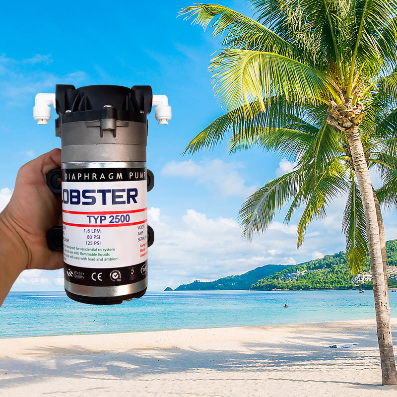 در دستگاه های تصفیه آب خانگی برای حذف آلاینده های آب از فیلتر ممبران استفاده می شود، در فیلترهای ممبران برای ایجاد فشار از پمپ های تصفیه آب استفاده می شود. پمپ های تصفیه آب لابستر اورجینال با وزن 2100 و هد پمپ با پیچ قابل تنظیم خانگی برای بالا بردن فشار در سیستم های تصفیه آب جهت انجام صحیح فرایند اسمز معکوس کاربرد دارند.نکته بسیار مهم در مورد این پمپ ها این است که این پمپ ها ، پمپ فشار هستند نه مکش . یعنی اینکه هیچ مکشی را نمیتوانند ایجاد کنند و حتما آب باید با یک فشار حداقلی (حدود 1bar یا 15PSI ) وارد پمپ شود تا پمپ بتواند فشار آنرا بالا ببرد . این پمپها معمولا کم مصرف بوده و حدود 24 ولت برق از ترانس دریافت میکنند . فشار پمپ ها با میزان جریان عبوری ( دبی آب پمپ شده ) متغییر میباشد مثلا اگر مسیر آب کاملا باز باشد پمپ آب را تقریبا با فشار 20PSI پمپ میکند اما با نرخ جریان 1.6 لیتر در دقیقه و اگر مسیر جریان بسته باشد که آب تنها بتواند با نرخ 0.25 لیتر در دقیقه خارج شود ، فشار تا 100 PSI خواهد رسید . بنابراین فشار ایجاد شده بستگی به مقدار آب پمپ شده دارد . پمپ های تصفیه آب از دو قسمت بدنه اصلی و هد تشکیل شده اند. اگر پمپ های تصفیه آب خانگی کیفیت های لازم را برای پمپاژ آب نداشته باشند، فشار لازم در فیلترهای ممبران ایجاد نمی شود همین موضوع سطح کیفی آب را تحت تاثیر قرار می دهد. به همین دلیل سطح کیفی پمپ تصفیه آب در دستگاه های تصفیه آب اهمیت زیاد دارد تا فشار لازم برای تصفیه آب در فیلتر ممبران ایجاد شود. همچنین لازم به ذکر است که این پمپ دارای هد قابل تنظیم، و دو عدد زانوی پمپ دبل اورینگ، می باشد