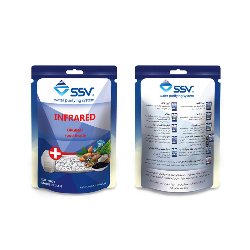 بسته شارژ فیلتر اینفرارد مخصوص شارژ نمودن و بازیابی عملکرد فیلتر اینفرارد می باشد. فیلتر شارژ پذیر اینفرارد SSV یکی از پر کاربردترین فیلتر های فرآوری دستگاه های تصفیه آب این برند می باشد که با در اختیار داشتن تکنولوژی شارژ پذیری از مدل قبلی این محصول به مراتب مقرون به صرفه تر و عملیاتی تر می باشد. از خواص فیلتر اینفرارد (اکسیژن ساز) بالا بردن سطح اکسیژن آب و ایجاد سوخت و ساز بهتر بدن، بهبود عملکرد اعصاب، بهبود راندمان عضلات، آنتی اکسیدان کننده و هیدراته شدن آب اشاره نمود. این کپسول بوسیله مواد بیوسرامیکی داخل خود در ساختار مولکول های آب شکست ایجاد نموده و حجم اکسیژن آب را بالا می برد که موجب افزایش قدرت جذب اکسیژن توسط بدن و افزایش سوخت و ساز بدن می گردد. همچنین افزایش سطح اکسیژن و سوخت و ساز بدن در کنار رژیم غذایی مناسب و ورزش در کاهش چربی های انباشته شده در بدن تاثیر قابل توجهی خواهد داشت. این شارژکپسول کیفیت آب را در حدی بالا می برد که می توان تاثیر آن را روی شفافیت پوست و مو مشاهده نمود.