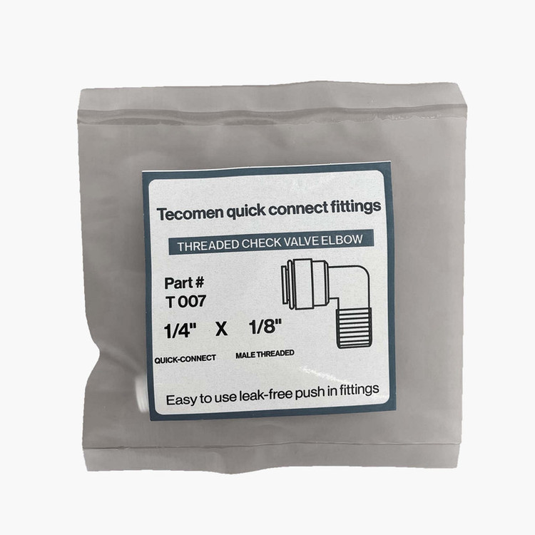 این قطعه به نام زانو سوپاپ دار شناخته میشود و در قسمت خروجی آب تصفیه شده هوزینگ ممبران متصل میشود. سوپاپ موجود در این زانو مانع برگشت آب تصفیه شده از مخزن میشود. این قطعه ساخت شرکت معتبر تکومن ویتنام است.