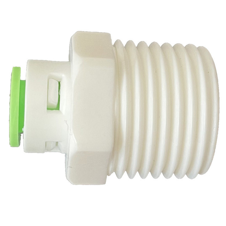تبدیل رزوه 1/2 به اتصال فیتینگ 6 جهت استفاده در دستگاه های تصفیه آب خانگی، یخچال، آب سردکن و اسپرسو ساز که توسط شلنگ های سایز 6 قابل نصب می باشد. این قطعه در قسمت ورودی آب سرد توسط تفلون وصل و شلنگ 6 به صورت فیتینگ سریع متصل میگردد.