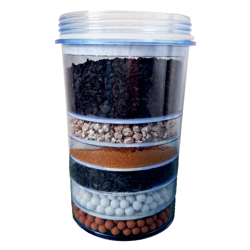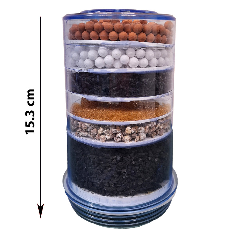 لطفا دقت فرمائید این فیلتر مناسب برای مخزن های فیلتردار ایستکول و گوسونیک ، کارو ، آکیا و کورتکث نیست. پس در خرید خود دقت کنید. در تمامی فیلتر کارتریج های چند لایه مهم ترین قسمت بخش رزوه آن می باشد ؛ نوع رزوه دنده ریز یا درشت و قطر قسمت رزوه خیلی خیلی مهم می باشد چون هیچکدام به یکدیگر بسته نمی شوند.قطر قسمت رزوه این فیلتر حدود 9 سانت می باشد.این فیلتر در مخزن های تصفیه آب آبسردکنی ؛ سوپر مکث و بیمر مدل 20LC و مخزن فیلتر دار رامکو مدل SM-515 به کار می رود. فیلتر از لحاظ سایز قطر رزوه ها مناسب منبع فیلتر دار سوپرمکث و رامکو نیز می باشد. دارای 5 لایه فیلتراسیون شامل ذغال اکتیو کربن جهت حذف بو و طعم اضافی آب همچنین حذف عوامل اسیدی ، سنگهای معدنی کننده و دانه های مینرال بال جهت اضافه نمودن املاح معدنی مفید و فیلتر سرامیکی جهت جذب ذرات معلق موجود در آب می باشد.