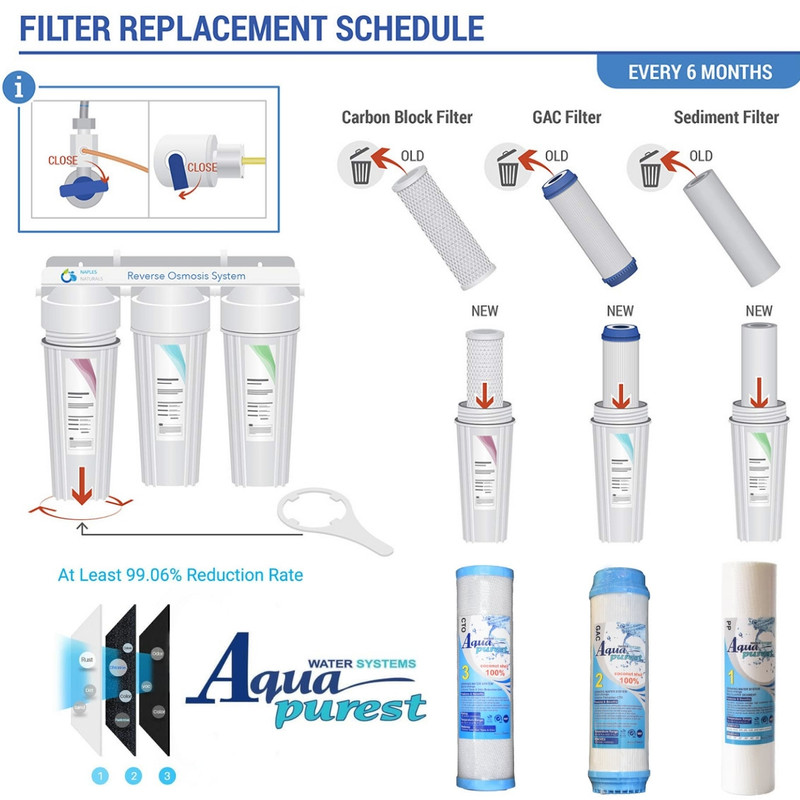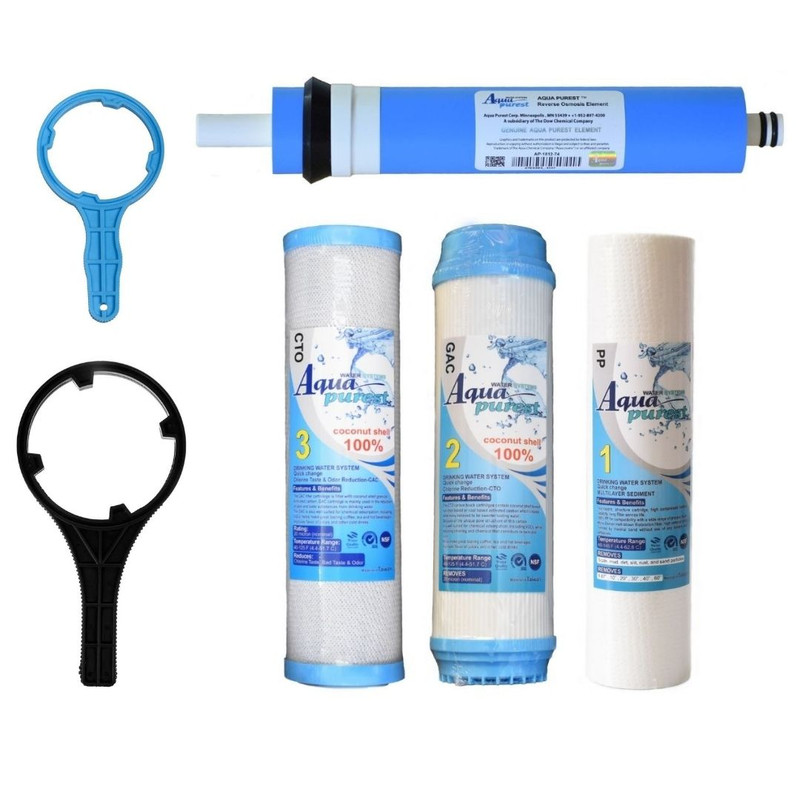 پک 6 عددی فیلتر تصفیه آب با برند معتبر آکوا پیورست به همراه کپسول فاضلاب ساخته شده از بهترین متریال فود گرید با کربن 100 درصد گیاهی (پوسته نارگیل) در دستگاههای تصفیه آب خانگی قرار میگیرند. از ویژگیهای منحصر به فرد فیلترهای آکوا پیورست میتوان به; کیفیت ساخت بالا، جنس بدنه فیلترها PVC با ارزش غذایی Food Grade، ممبران 13 لایه 75 گالنی با کامپوزیت درجه کیفی A و کربن به کار رفته در فیلترها از منشاء گیاهی 100 درصد پوسته نارگیل اشاره کرد. فیلترهای این برند دارای سایز استاندارد میباشد و میتوان از آن در تمامی دستگاههای تصفیه کننده آب استفاده کرد. این پک دارای 6 عدد فیلتر است. این فیلترها شامل فیلتر الیافی پلی پروپیلن، فیلتر کربن پودری و کربن بلاک، ممبران RO، پست کربن و مینرال (تنظیم کننده املاح مفید) است. مواد مضری که توسط این فیلترها از آب حذف میشوند شامل: گل و لای، شن و ماسه، زنگ لوله، بو، مزه و طعم نا مطبوع، نمک و آهک، شوری آب، کلر و مشتقات آن و آلایندههای شیمیایی آب است. فیلترهای تصفیه آب آکواپیورست مدل PRO-GOLD 75G قابلیت حذف نا خالصیها تا اندازه 0.0001 میکرون با دقت 99 درصد را دارد. استفاده از پک فیلتر آکواپیورست باعث افزایش کیفیت آب مصرفی شما میشود و علاوه بر این باعث طول عمر بیشتر دستگاه تصفیه آب میشود. بهرهگیری کمپانی آکواپیورست از تکنولوژی روز دنیا برای ساخت فیلترهای با کیفیت موجب شده تا آکواپیورست استانداردها و تاییدیه های جهانی همچون NSF, FDA, Water Quality را در کارنامه خود داشته باشد. نکته مهم: در دستگاه های تصفیه آب با روش اسمز معکوس (RO) اگر فیلترهای تصفیه کیفیت لازم را نداشته باشند؛ علاوه بر این که طول عمر آن ها بسیار کمتر از نمونه های با کیفیت است، بر عملکرد فیلتر ممبران که اصلی ترین فیلتر در سیستم اسمز معکوس است تاثیر منفی گذاشته و روند تصفیه آب با اختلال روبرو می شود. استفاده از ست فیلترهای پیش تصفیه آکواپیورست علاوه بر اینکه آب را از آلاینده هایی مثل کلر، رسوبات، مواد شیمیایی سرطان زا و مواد آلی فرار پاک می کند؛ باعث طول عمر بیشتر فیلتر ممبران و دستگاه تصفیه آب شما می شود. بنابر این اگر به دنبال خرید فیلتر تصفیه آب با کیفیت و مطمئن هستید، فیلتر تصفیه آب آکواپیورست یکی از گزینههایتان است.