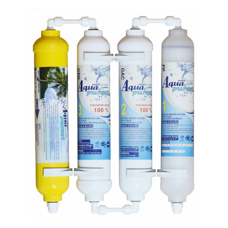 فیلتر 4 مرحله ای یخچال ساید بای ساید با برند معتبر آکوا پیورست مدل الیافی، کربنی و مینرال SF 4001 با توان تصفیه 2500 گالنی و دقت تصفیه 99 درصدی از بهترین کیفیت و متریال فود گرید درجه A، صد در صد پوسته نارگیل و الیاف پرو پیلن ساخته شده است. این فیلترها در اندازه و ابعاد استاندارد مناسب برای همه ی برندها و انواع یخچال ساید بای ساید میباشد. طراحی این مدل فیلتر به طوری است که در 4 مرحله آب ورودی به یخچال ساید را فیلتر و تصفیه کامل میکند، در مرحله اول فیلتر الیافی با بدنه شفاف (قابل رویت) گلولای، شن و ماسه، زنگ لوله و رسوبات از آب حذف میشود و در مرحله دوم و سوم فیلتر کربن فعال پودری گیاهی (پوسته نارگیل) آلایندههای شیمیایی، کلر و مشتقات آن، بوی بد و طعم نامطبوع، کدورت آب و سموم شیمیایی از آب حذف میشود و در مرحله سوم آب فرآوری میشود، به گونهای که تمام املاح مورد نیاز بدن به آب اضافه میشود و سبب بهبود طعم و مزه آب میگردد. این فیلترها تمام نیازهای شما را برای داشتن آبی با کیفیت بالا و عاری از آلاینده برطرف می سازد. فیلتر یکی از موارد ضروری در استفاده از یخچال ساید بای ساید می باشد چراکه با استفاده از این فیلتر علاوه بر تامین آب سالم کلیه رسوبات و املاح معلق از آب حذف شده و از مسدود شدن منافظ ورودی آب و صدمه به یخچال جلوگیری می کند. عمر مفید این فیلترها 10 تا 12 ماه بسته به میزان مصرف می باشد. برند آکواپیورست از نمونه برندهایی می باشد، که کیفیت محصولات آن تضمین شده است و علاوه بر بهبود عملکرد تصفیه، باعث افزایش طول عمر یخچال میشود. محصولات این برند معتبر، بر پایه مواد گیاهی هستند و استانداردهای لازم را در زمینه تولید و ارائه کالا دارند. این مدل فیلتر با آب بندی 100 درصدی و مطمئن آمادهی اتصال شلنگ یخچال و نصب میباشد. توجه داشته باشید پس از نصب ورودی فیلتر، آب را باز کرده و اجازه دهید حدود 3 لیتر آب برای پاکسازی و کربن گیری فیلتر خارج شود، سپس خروجی فیلتر را متصل کنید.