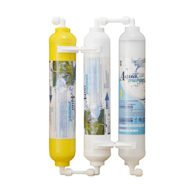 برند آکواپیورست یکی از حرفه ای ترین و در عین حال کاربردی ترین فیلترهای آبسردکن را در 3 مرحله فیلتراسیون روانه بازار کرده است. این مدل فیلتر مونتاژ شده آماده اتصال شلنگ و با آب بندی 100 درصدی و بدون نشتی، بین شلنگ ورودی به سیستم آبسردکن نصب میشود. فیلتر3 مرحله ای آبسردکن با برند معتبر آکوا پیورست مدل الیافی، کربنی و مینرال گیاهی F 300 NEW با توان تصفیه 2500 گالنی و دقت تصفیه 99 درصدی از بهترین کیفیت و متریال فود گرید درجه A، صد در صد پوسته نارگیل و الیاف پرو پیلن ساخته شده است. این فیلترها در اندازه و ابعاد استاندارد مناسب برای همه ی برندها و انواع آبسردکن میباشد. طراحی این مدل فیلتر به طوری است که در 3 مرحله آب ورودی به آبسردکن را فیلتر و تصفیه کامل میکند، در مرحله اول فیلتر الیافی با بدنه شفاف (قابل رویت) گلولای، شن و ماسه، زنگ لوله و رسوبات از آب حذف میشود و در مرحله دوم فیلتر کربن فعال پودری گیاهی (پوسته نارگیل) آلایندههای شیمیایی، کلر و مشتقات آن، بوی بد و طعم نامطبوع، کدورت آب و سموم شیمیایی از آب حذف میشود و در مرحله سوم آب فرآوری میشود، به گونهای که تمام املاح مورد نیاز بدن به آب اضافه میشود و سبب بهبود طعم و مزه آب میگردد. این فیلترها تمام نیازهای شما را برای داشتن آبی با کیفیت بالا و عاری از آلاینده برطرف می سازد. فیلتر یکی از موارد ضروری در استفاده از آبسردکن می باشد چراکه با استفاده از این فیلتر علاوه بر تامین آب سالم کلیه رسوبات و املاح معلق از آب حذف شده و از مسدود شدن منافظ ورودی آب و صدمه به آبسردکن جلوگیری می کند. عمر مفید این فیلترها 10 تا 12 ماه بسته به میزان مصرف می باشد. برند آکواپیورست از نمونه برندهایی می باشد، که کیفیت محصولات آن تضمین شده است و علاوه بر بهبود عملکرد تصفیه، باعث افزایش طول عمر دستگاه آبسرکن میشود. محصولات این برند معتبر، بر پایه مواد گیاهی هستند و استانداردهای لازم را در زمینه تولید و ارائه کالا دارند. این مدل فیلتر با آب بندی 100 درصدی و مطمئن آمادهی اتصال شلنگ و نصب میباشد. توجه داشته باشید پس از نصب ورودی فیلتر، آب را باز کرده و اجازه دهید حدود 3 لیتر آب برای پاکسازی و کربن گیری فیلتر خارج شود، سپس خروجی فیلتر را متصل کنید.