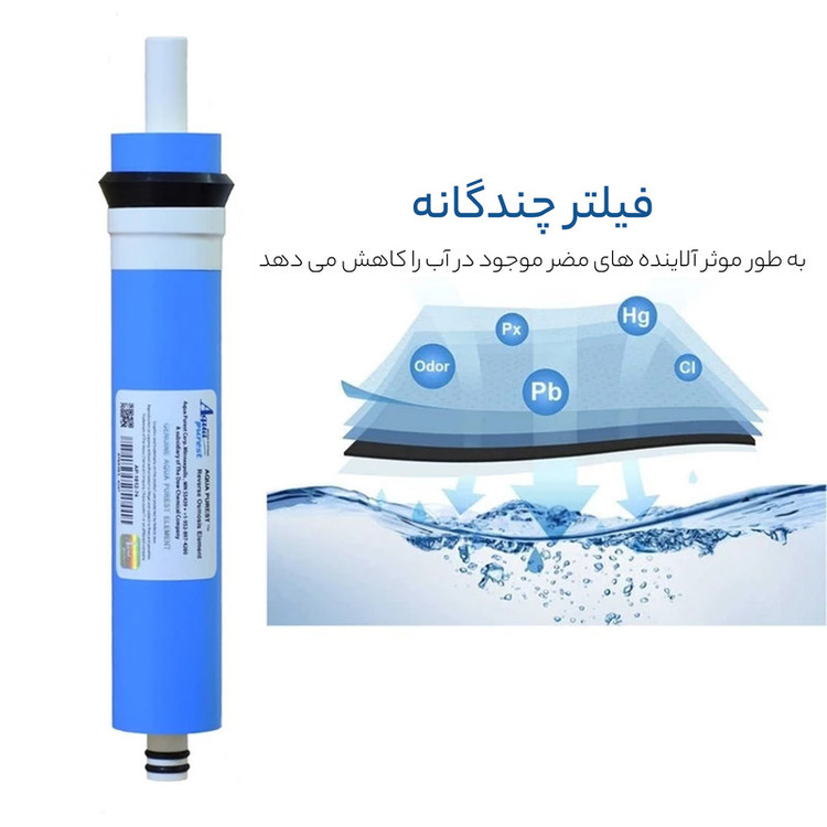 فیلتر ممبران دستگاه تصفیه آب به همراه کپسول محدود کننده فاضلاب مدل 300 خانگی با برند معتبر آکوا پیورست مدل ممبران 13لایه 75 گالنی از بهترین لایههای کامپوزیت با کیفیت و متریال فود گرید درجه A ساخته شده است. این فیلتر مناسب برای همه ی برندها و انواع دستگاههای تصفیه آب خانگی میباشد. با تعویض به موقع (یک تا دو سال) کپسول فاضلاب عمر ممبران افزایش میابد و از مسدود شدن منافذ ممبران جلوگیری میشود، وظیفهی کپسول فاضلاب هدایت آب غیر تصفیه به فاضلاب است. از ویژگیهای منحصر به فرد فیلتر آکوا پیورست میتوان به کیفیت ساخت بالا، قابلیت کارکرد در آبهای با سختی بالا، 13 لایه ورق کامپوزیت درجه A، تراکم بالا و فشردگی لایهها، بدنه فیلتر PVC با ارزش غذایی فود گرید Food Grade و طول عمر بالا اشاره کرد. وظیفهی این فیلتر حذف ذرات معلق در آب به قطر 0/0001 میکرون است. موارد فیلتر شونده عبارتند از گلولای، شنوماسه، زنگ لوله، نمک و شوری آب، فلزات سنگین، جیوه، سرب، آلودگیهای شیمیایی، نیترات و نیتریت و همچنین بوی بد و کدورت آب. این فیلتر تمام نیازهای شما را برای داشتن آبی با کیفیت بالا و عاری از آلاینده برطرف می سازد. فیلتر ممبران یکی از موارد ضروری در استفاده از دستگاههای تصفیه آب خانگی می باشد چراکه با استفاده از این فیلتر علاوه بر تامین آب سالم کلیه رسوبات و املاح معلق از آب حذف شده و از مسدود شدن منافظ ورودی آب و صدمه به دستگاه جلوگیری می کند. عمر مفید این فیلتر 12 تا 24 ماه بسته به میزان مصرف می باشد. برند آکواپیورست از نمونه برندهایی می باشد، که کیفیت محصولات آن تضمین شده است و علاوه بر بهبود عملکرد تصفیه، باعث افزایش طول عمر دستگاه تصفیه میشود. محصولات این برند معتبر، بر پایه مواد گیاهی هستند و استانداردهای لازم را در زمینه تولید و ارائه کالا دارند. نکته مهم: در دستگاه های تصفیه آب با روش اسمز معکوس اگر فیلترهای پیش تصفیه کیفیت لازم را نداشته باشند؛ علاوه بر این که طول عمر آن ها بسیار کمتر از نمونه های با کیفیت است، بر عملکرد فیلتر ممبران که اصلی ترین فیلتر در سیستم اسمز معکوس است تاثیر منفی گذاشته و روند تصفیه آب با اختلال روبرو می شود. بنابر این اگر به دنبال خرید فیلتر تصفیه آب با کیفیت و مطمئن هستید، فیلتر تصفیه آب آکواپیورست مدل ممبران 13لایه 75 گالنی یکی از گزینههایتان است.