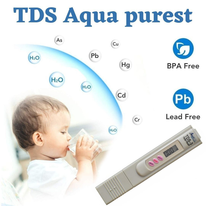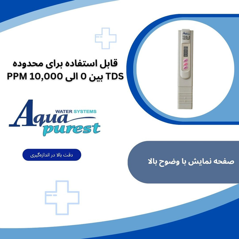 سختی سنج آب آکوا پیورست مدل 3 دکمه TDS اصلی یکی از دستگاههای پر کاربرد برای سنجش میزان سختی یا مواد محلول در آب میباشد. در ساختار سختی سنج آب آکوا پیورست از باطری با طول عمر بالا استفاده شده است و به همین دلیل بعد از خرید تا مدتها نیاز به تعویض باطری آن نمیباشد. سختی سنج یا املاح سنج آکوا پیورست مدل 3 دکمه TDS اصلی توانایی اندازه گیری میزان املاح آب را به دقت بالا دارد و به همین دلیل دارای کاربرد بالایی در صنایع مختلف میباشد. از ویژگیهای سختی سنج آکوا پیورست مدل TDS اصلی میتوان به: دقت بالا در میزان اندازهگیری سختی آب، سطح کیفی بالای قطعات، صفحه نمایش با وضوح بالا، قابل حمل و کاربری بسیار آسان و طول عمر بالا اشاره کرد. با استفاده از دستگاه سختی سنج آب آکوا پیورست این امکان برای شما کاربر گرامی فراهم میشود که از وضعیت دستگاه و فیلترهای آن و هم چنین آب خروجی اطلاع و اطمینان پیدا کنید. سختی سنج آب با کاربری بسیار راحت، امکان میزان سنجش میزان سختی آب را به صورت دستی برای شما فراهم میکند. برای این کار کافی است مقداری از آب را داخل لیوان یا درب سختی سنج ریخته و بعد از روشن کردن دستگاه، آن را داخل آب موجود در درب ثابت نگه دارید سپس میزان سختی آب روی صفحه نمایشگر نمایش داده خواهد شد. اگر به دنبال خرید سختی سنجی با کیفیت و دقت بالا هستید، سختی سنج آب آکوا پیورست مدل TDS اصلی یکی از گزینههایتان است.