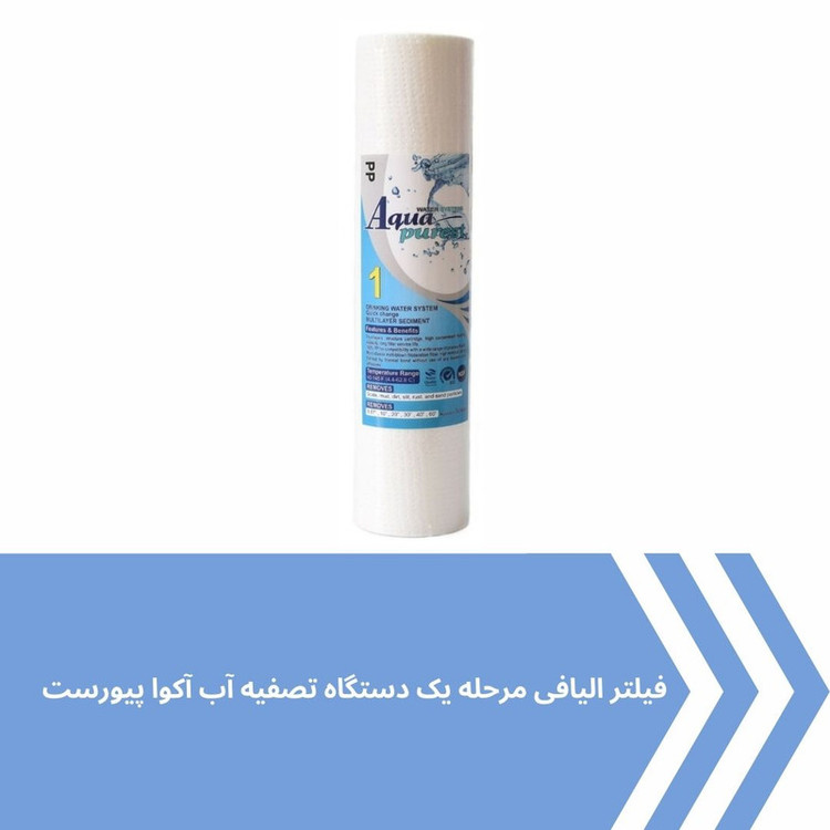 فیلتر مرحله یک دستگاه تصفیه آب مجموعه 4 عددی با برند معتبر آکوا پیورست مدل 5 میکرون از بهترین کیفیت و متریال فود گرید درجه A ساخته شده است. این فیلتر در اندازه استاندارد مناسب برای همه ی برندها و انواع دستگاههای تصفیه آب خانگی میباشد. از ویژگیهای منحصر به فرد فیلتر آکوا پیورست میتوان به کیفیت ساخت بالا، کارکرد در سختی آب بالا و سنگین، تراکم بالا و فشردگی لایهها، مواد اولیه الیافی 100 درصد پرو پیلن و طول عمر بالا اشاره کرد. وظیفهی این فیلتر حذف ذرات معلق در آب به قطر 1 الی 5 میکرون است. موارد فیلتر شونده عبارتند از گل ولای، شنوماسه، زنگ لوله، فلزات سنگین، جیوه، سرب و همچنین بوی بد و کدورت آب. این فیلتر تمام نیازهای شما را برای داشتن آبی با کیفیت بالا و عاری از آلاینده برطرف می سازد. فیلتر اولیه الیافی یکی از موارد ضروری در استفاده از دستگاههای تصفیه آب می باشد چراکه با تعویض به موقع و استفاده از این فیلتر علاوه بر تامین آب سالم کلیه رسوبات و املاح معلق از آب حذف شده و از مسدود شدن منافظ ورودی آب و صدمه به فیلتر ممبران جلوگیری می کند. عمر مفید این فیلتر 4 تا 6 ماه بسته به میزان مصرف می باشد. برند آکواپیورست از نمونه برندهایی می باشد، که کیفیت محصولات آن تضمین شده است و علاوه بر بهبود عملکرد تصفیه، باعث افزایش طول عمر دستگاه میشود.
