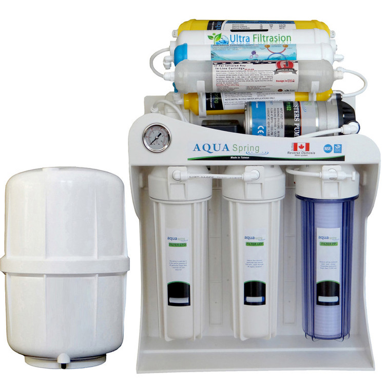 با توجه به شرایط حال حاضر دنیا و کشور ما، گسترش انواع بیماری ها و ویروس ها عملکرد سیستم ایمنی بدن و مقاومت بدن در برابر بیماری ها بیش از گذشته دارای اهمیت است. ذکر این نکته ضروری است که علائم حیاتی در انسان بر اساس عملکرد صحیح دستگاه های مختلف بدن برنامهریزی شده است. دستگاه گوارشی و کیفیت آب آشامیدنی و ارتباط تنگاتنگ آن با سیستم دفاعی بدن نقش تعیینکننده در حفظ سلامتی دارد. دستگاه تصفیه آب خانگی آکوآاسپرینگ مدل SF4990 ده مرحلهای از جدیدترین و به روزترین دستگاه های موجود در بازار است. دستگاه فوق از مکانیزم دوگانه، اسمز معکوس ، فیلتر قلیایی ،سوپرمینرال،اکسیژن ساز برخوردار است. این دستگاه از متریال و هوزینگ های فود گرید ، فیلترهایی بر پایه گیاهی ، مخزن آنتی باکتریال ، مگا بوستر پمپ قوی با فشار 125 psi و شیر استیل جداگانه برخوردار است. این دستگاه در سه مرحله ی ابتدایی کلیه املاح معلق ،کلر و آلودگی های نباتی و فیزیکی آب را میگیرد ودر مرحله بعد نیترات، نیتریت ،آرسنیک و میگروارگانیسم های مضر شیمیایی و فلزات سنگین از جمله سرب ، جیوه و کلیه املاح سرطان زا را بطور کامل از آب گرفته می شود. در این دستگاه از مرغوب ترین فیلتر قلیایی ساز(یونایزر) استفاده شده است. این فیلتر با استفاده از فرآیند الکترولیز اجزای اسیدی و قلیایی آب را جدا میکند تا PH آب را افزایش دهد. سیستم اولترافیلتراسیون تکنولوژی جداسازی ذرات معلق تا 0/01 میکرون با غشاهای میان تهی از جنس پلی پروپلین بر پایه گیاهی گفته می شود. دستگاه فوق دارای فیلتر اکسیژن ساز میباشد که به وسیله سنگهای بیوسرامیک و شکست مولکولی آب سطح میزان اکسیژن آب را افزایش میدهد. دستگاه فوق دارای ممبراین فیلمتک، شیر استیل مجزا، مخزن ذخیره مجزای آنتی باکتریال می باشد که از بهترین و معتبرترین دستگاه های ارائه شده در بازار است. کلیه محصولات نشانگر کیفیت و سلامت محصول اروپا را دارا می باشند و استانداردهای NSF – ISO – FDA – WATER QUALITY – CE را کسب نموده است.