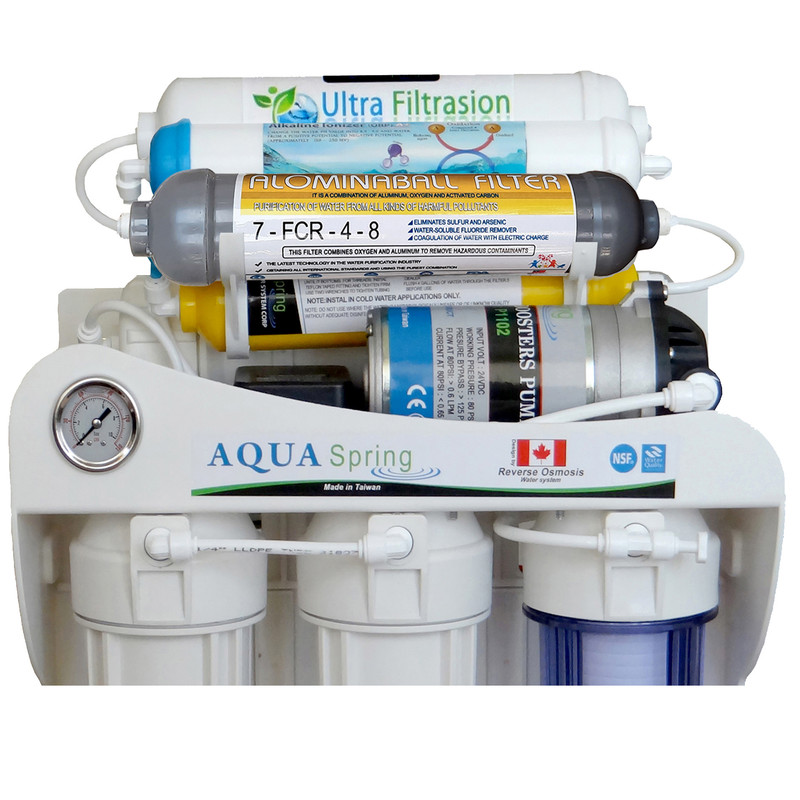 با توجه به شرایط حال حاضر دنیا و کشور ما و گسترش انواع بیماریها و ویروسها، عملکرد سیستم ایمنی بدن و مقاومت بدن در برابر بیماریها بیش از گذشته دارای اهمیت است. ذکر این نکته ضروری است که علائم حیاتی در انسان بر اساس عملکرد صحیح دستگاههای مختلف بدن برنامهریزی شده است. دستگاه گوارشی و کیفیت آب آشامیدنی و ارتباط تنگاتنگ آن با سیستم دفاعی بدن، نقش تعیینکننده در حفظ سلامتی دارد. دستگاه تصفیهآب خانگی با برند معتبر آکوااسپرینگ مدل SF5660 ده مرحلهای، یکی از باکیفیتترین دستگاههای تصفیه آب خانگی است. این دستگاه از متریال و هوزینگهای فودگرید، فیلترهایی بر پایه گیاهی، مخزن آنتیباکتریال 12 لیتری، مگابوستر پمپ قوی بافشار 125 PSI و شیر جداگانه برخوردار است. سیستم اولترافیلتراسیون(مکانیزم دوگانه)، به تکنولوژی جداسازی ذرات معلق تا 0/01 میکرون با غشاهای میان تهی از جنس پلی پروپلین بر پایه گیاهی گفته میشود. عملکرد فیلترهای این دستگاه در سه مرحله اول به این صورت است که کلیه املاح معلق و مضر، کلر، آفتکشها و شوری را از آب گرفته و در مرحله بعد نیترات، نیتریت، جیوه و میکروارگانیسمهای شیمیایی و فلزات سنگین (کلیه املاح سرطانزا) را بهطور کامل از آب میگیرد. در این دستگاه از مرغوبترین فیلتر قلیاییساز(یونایزر) استفاده شده است. یکی از مهمترین فیلترها با جدیدترین تکنولوژی در صنعت تصفیه آب، فیلتر آلومینوبال فعال است؛ این فیلتر ترکیبی از آلومینیوم و اکسیژن و ذغال فعال است. نحوه تصفیه آن به این شکل است که با منعقدسازی مواد زائد موجود در آب(آلودگیهای شیمیایی، آرسنیک و گوگرد و کلر و...) توسط سولفات آلومینیوم، موجب لخته سازی ذرات آب میشود؛ در واقع یونهای سولفات آلومینیوم در مواجهه با آب دارای بار الکتریکی مثبت میشوند و ذرات مخالف بار خود را جذب کرده و به هم میچسبند و ذرات بزرگتر تشکیل شده و در فرآیند تصفیه از آب جدا میشوند. دستگاه فوق دارای شیر مجزا، مخزن ذخیره مجزای آنتی باکتریال است که از بهترین و معتبرترین دستگاههای ارائه شده در بازار است. کلیه محصولات نشانگر کیفیت و سلامت محصول اروپا را دارا هستند و استانداردهای NSF – ISO – FDA – WATER QUALITY – CE را کسب کردهاند.