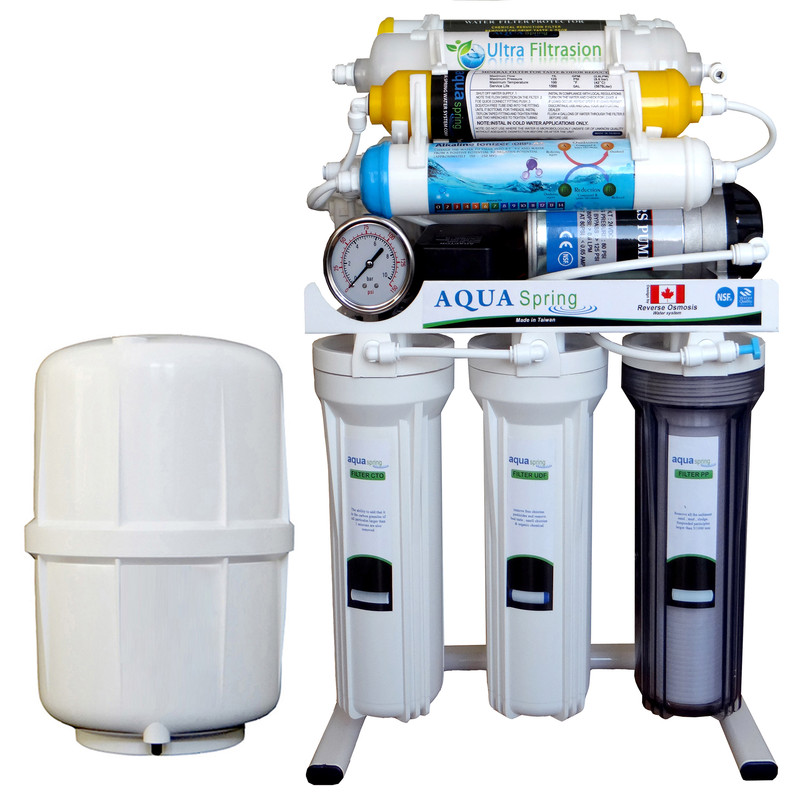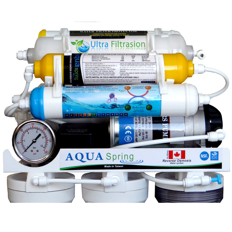 دستگاه تصفیه آب خانگی آکوآاسپرینگ مدل NF3900 10 مرحلهای از جدیدترین و به روزترین دستگاههای موجود در بازار است. دستگاه فوق از مکانیزم دوگانه، اسمز معکوس، فیلتر قلیایی، سوپرمینرال، محافظ ممبران برخوردار است. این دستگاه از متریال و هوزینگهای فود گرید، فیلترهایی بر پایه گیاهی، مخزن آنتی باکتریال، مگا بوستر پمپ قوی با فشار 125 psi و شیر استیل جداگانه برخوردار است. این دستگاه در سه مرحله ابتدایی تمامی املاح معلق، کلر و آلودگیهای نباتی و فیزیکی آب را میگیرد و در مرحله بعد نیترات، نیتریت، آرسنیک و میگروارگانیسمهای مضر شیمیایی و فلزات سنگین از جمله سرب، جیوه و تمامی املاح سرطانزا را به طور کامل از آب گرفته میشود. در این دستگاه از مرغوبترین فیلتر قلیایی ساز (یونایز) استفاده شده است. این فیلتر با استفاده از فرآیند الکترولیز اجزای اسیدی و قلیایی آب را جدا میکند تا PH آب را افزایش دهد. سیستم اولترافیلتراسیون تکنولوژی جداسازی ذرات معلق تا 0/01 میکرون با غشاهای میان تهی از جنس پلی پروپلین بر پایه گیاهی گفته میشود. دستگاه فوق دارای ممبراین فیلمتک، شیر استیل مجزا، مخزن ذخیره مجزای آنتی باکتریال است که از بهترین و معتبرترین دستگاههای ارائه شده در بازار است. تمامی محصولات نشانگر کیفیت و سلامت محصول اروپا را دارا هستند و استانداردهای NSF – ISO – FDA – WATER QUALITY – CE را کسب کرده است.