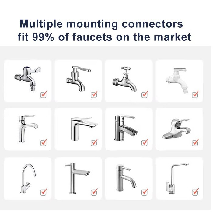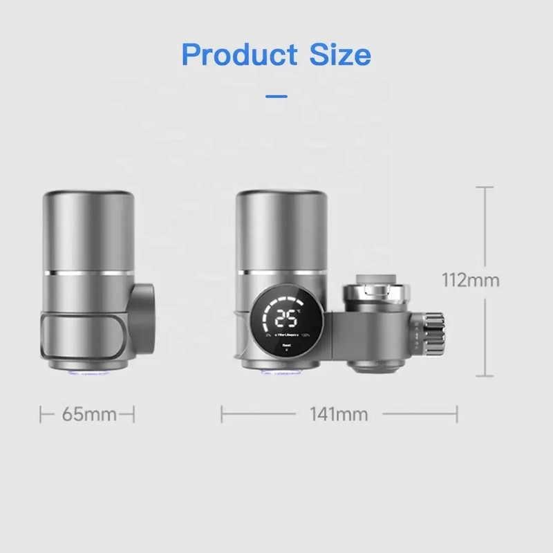 دستگاه تصفیه آب خانگی با دبی 1 لیتر در دقیقه، دارای صفحه نمایش دما و عمر فیلتر، شیر دوحالته و ضدعفونی کننده UV بوده و انرژی آن از چرخش جریان آب تامین میشود(بدون نیاز به باتری). کاربری محصول آسان بوده و روی اکثر شیرآلات بازار قابلیت نصب دارد. جنس بدنه از پلاستیک و وزن کلی آن 350 گرم با ابعاد 8×11×14 سانتیمتر میباشد. فشار آب مورد نیاز آن 0.1 تا 0.4 MPA بوده و جهت ایجاد میکرو حبابهای هوا، سوراخهای خروجی 0.7 میلیمتری ساخته شده است. | دارای فیلتر 7 لایه طراحی شده برای کلرزدایی، املاح زدایی، حذف مواد معلق و ضد موجودات ارگانیک(اِشِریشیا کولی و استافیلوکوک) که به همراه اشعه UV، آب تصفیه شده بی رنگ و بی بو را در اختیار مصرفکننده قرار میدهد. | به همراه محصول، 6 مدل رابط اتصال ارسال میگردد.
