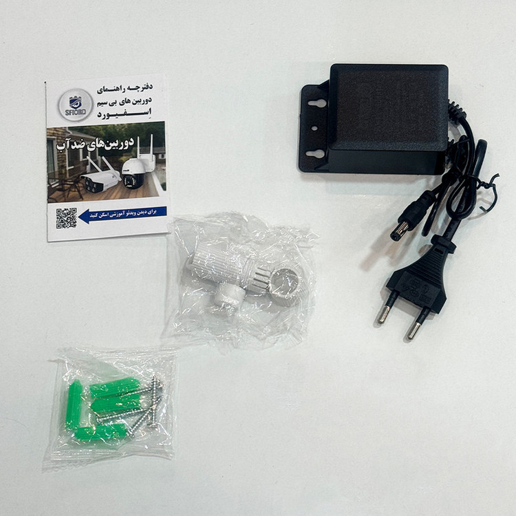 اقلام همراه : آداپتور، کارت گارانتی، دفترچه راهنمای فارسی، پیچ و رول پلاک نصب، کاور ضد آب کابل شبکه