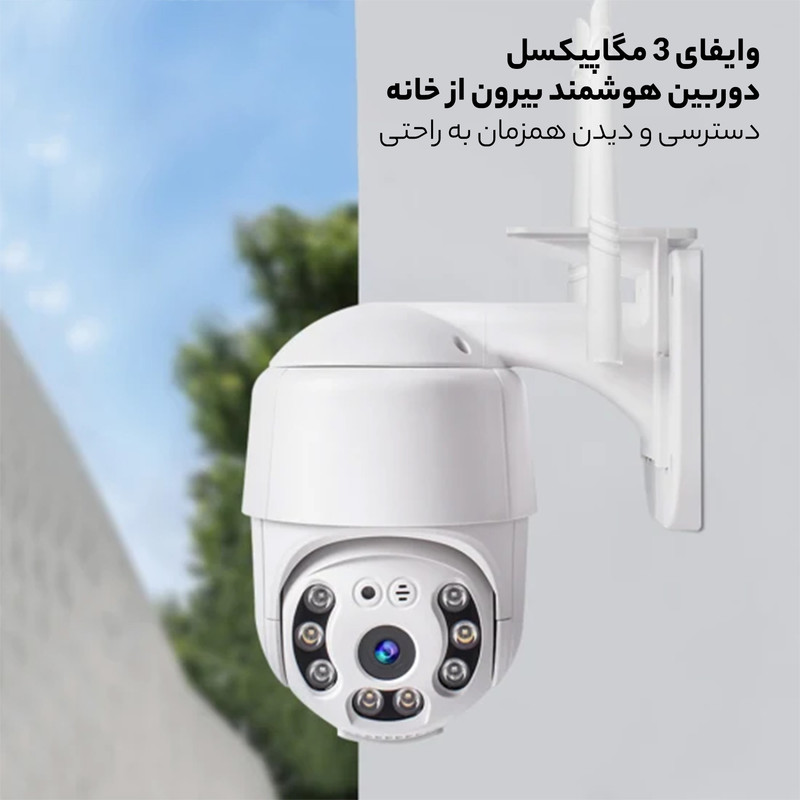 دوربین مینی اسپید دام | اتصال از طریق کابل و وایفای:مینی اسپید دام تحت شبکه وایفای استارلایت دارای دید در شب رنگی برای محیط های داخلی و خارجی طراحی و ساخته شده است که دارای استاندارد IP66 ضد آب و گرد و غبار است همچنین قابلیت چرخش 260 درجه افقی و 90 درجه عمودی می باشد. با استفاده از اپلیکیشن این دوربین قادر به مدیریت کامل دوربین، مشاهده تصویر زنده و ویدیو های ضبط شده و انجام تنظیمات دوربین و تغییر حالت های حرکتی خواهید بود. این مینی اسپید دام برای انتقال تصویر و کنترل بصورت وایرلس و همچنین از طریق کابل شبکه به مودم و روتر، قابل اتصال است. این دوربین از کارت حافظه تا ظرفیت 128 گیگابایت پشتیبانی نموده و دارای فشره سازی h264 است. همچنین دارای قابلیت گفتگوی دوطرفه و اعلان هشدار از طریق اینترنت روی گوشی موبایل است که نرم افزار V380 Pro که دارای سرور قدرتمند،بدون قطعی و رایگان برای انتقال تصویر است تکمیل کننده این ویژگی هاست. دوربین مینی اسپید دام | اتصال از طریق کابل و وایفای.دوربین مینی اسپید دام وایفای Mini Speed Dome WiFi 2MP مینی اسپید دام تحت شبکه وایفای استارلایت دارای دید در شب رنگی Starlight برای محیط های داخلی و خارجی طراحی و ساخته شده.دارای اندازه کوچک و استاندارد ضد اب و گرد و غبار است.IP66 قابلیت چرخش 360 درجه افقی و 90 درجه عمودی،اپ این دوربین قابلیت مدیریت کامل دوربین،مشاهده تصویر زنده و ویدیو های ضبط شده و تنظیمات دوربین،حالت های حرکتی رو داراست.مینی اسپید دام بصورت وایرلس به مودم ADSL قابل اتصال است.برای انتقال تصویر تحت شبکه اینترنت و همچنین از طریق کابل لن برای اتصال با سیم دوربین مینی اسپید دام هم امکان پذیر است،