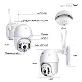 دوربین مینی اسپید دام | اتصال از طریق کابل و وایفای:مینی اسپید دام تحت شبکه وایفای استارلایت دارای دید در شب رنگی برای محیط های داخلی و خارجی طراحی و ساخته شده است که دارای استاندارد IP66 ضد آب و گرد و غبار است همچنین قابلیت چرخش 260 درجه افقی و 90 درجه عمودی می باشد. با استفاده از اپلیکیشن این دوربین قادر به مدیریت کامل دوربین، مشاهده تصویر زنده و ویدیو های ضبط شده و انجام تنظیمات دوربین و تغییر حالت های حرکتی خواهید بود. این مینی اسپید دام برای انتقال تصویر و کنترل بصورت وایرلس و همچنین از طریق کابل شبکه به مودم و روتر، قابل اتصال است. این دوربین از کارت حافظه تا ظرفیت 128 گیگابایت پشتیبانی نموده و دارای فشره سازی h264 است. همچنین دارای قابلیت گفتگوی دوطرفه و اعلان هشدار از طریق اینترنت روی گوشی موبایل است که نرم افزار V380 Pro که دارای سرور قدرتمند،بدون قطعی و رایگان برای انتقال تصویر است تکمیل کننده این ویژگی هاست. دوربین مینی اسپید دام | اتصال از طریق کابل و وایفای.دوربین مینی اسپید دام وایفای Mini Speed Dome WiFi 2MP مینی اسپید دام تحت شبکه وایفای استارلایت دارای دید در شب رنگی Starlight برای محیط های داخلی و خارجی طراحی و ساخته شده.دارای اندازه کوچک و استاندارد ضد اب و گرد و غبار است.IP66 قابلیت چرخش 360 درجه افقی و 90 درجه عمودی،اپ این دوربین قابلیت مدیریت کامل دوربین،مشاهده تصویر زنده و ویدیو های ضبط شده و تنظیمات دوربین،حالت های حرکتی رو داراست.مینی اسپید دام بصورت وایرلس به مودم ADSL قابل اتصال است.برای انتقال تصویر تحت شبکه اینترنت و همچنین از طریق کابل لن برای اتصال با سیم دوربین مینی اسپید دام هم امکان پذیر است،