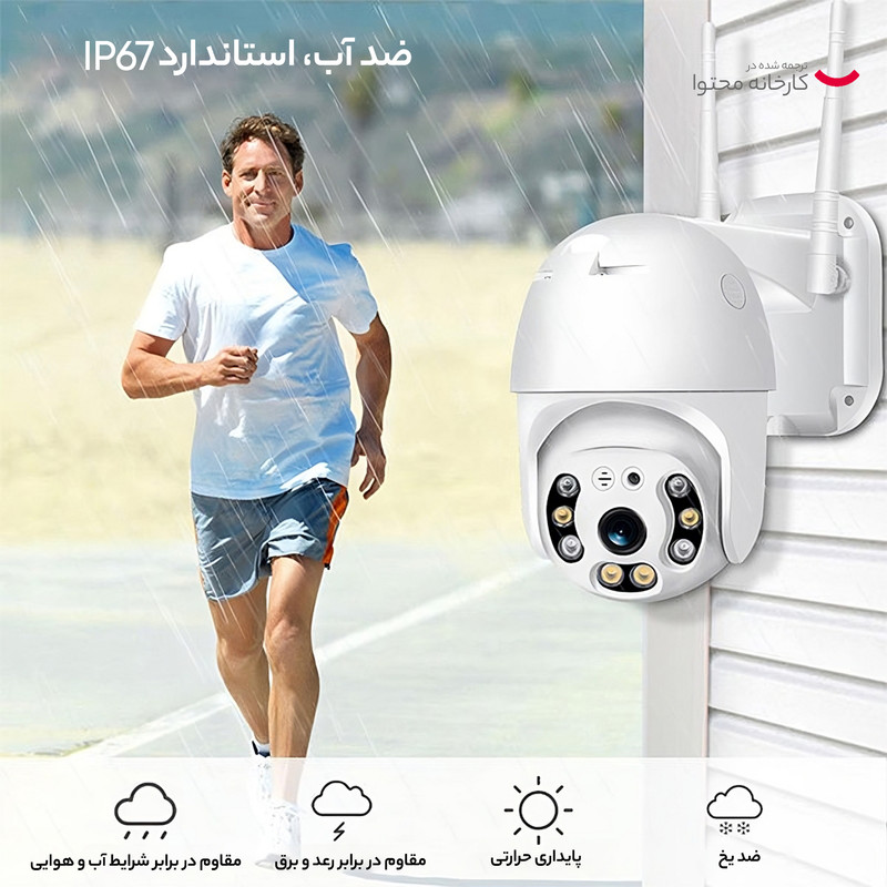 دوربین مینی اسپید دام | اتصال از طریق کابل و وایفای:مینی اسپید دام تحت شبکه وایفای استارلایت دارای دید در شب رنگی برای محیط های داخلی و خارجی طراحی و ساخته شده است که دارای استاندارد IP66 ضد آب و گرد و غبار است همچنین قابلیت چرخش 260 درجه افقی و 90 درجه عمودی می باشد. با استفاده از اپلیکیشن این دوربین قادر به مدیریت کامل دوربین، مشاهده تصویر زنده و ویدیو های ضبط شده و انجام تنظیمات دوربین و تغییر حالت های حرکتی خواهید بود. این مینی اسپید دام برای انتقال تصویر و کنترل بصورت وایرلس و همچنین از طریق کابل شبکه به مودم و روتر، قابل اتصال است. این دوربین از کارت حافظه تا ظرفیت 128 گیگابایت پشتیبانی نموده و دارای فشره سازی h264 است. همچنین دارای قابلیت گفتگوی دوطرفه و اعلان هشدار از طریق اینترنت روی گوشی موبایل است که نرم افزار V380 Pro که دارای سرور قدرتمند،بدون قطعی و رایگان برای انتقال تصویر است تکمیل کننده این ویژگی هاست. دوربین مینی اسپید دام | اتصال از طریق کابل و وایفای.دوربین مینی اسپید دام وایفای Mini Speed Dome WiFi 2MP مینی اسپید دام تحت شبکه وایفای استارلایت دارای دید در شب رنگی Starlight برای محیط های داخلی و خارجی طراحی و ساخته شده.دارای اندازه کوچک و استاندارد ضد اب و گرد و غبار است.IP66 قابلیت چرخش 360 درجه افقی و 90 درجه عمودی،اپ این دوربین قابلیت مدیریت کامل دوربین،مشاهده تصویر زنده و ویدیو های ضبط شده و تنظیمات دوربین،حالت های حرکتی رو داراست.مینی اسپید دام بصورت وایرلس به مودم ADSL قابل اتصال است.برای انتقال تصویر تحت شبکه اینترنت و همچنین از طریق کابل لن برای اتصال با سیم دوربین مینی اسپید دام هم امکان پذیر است،