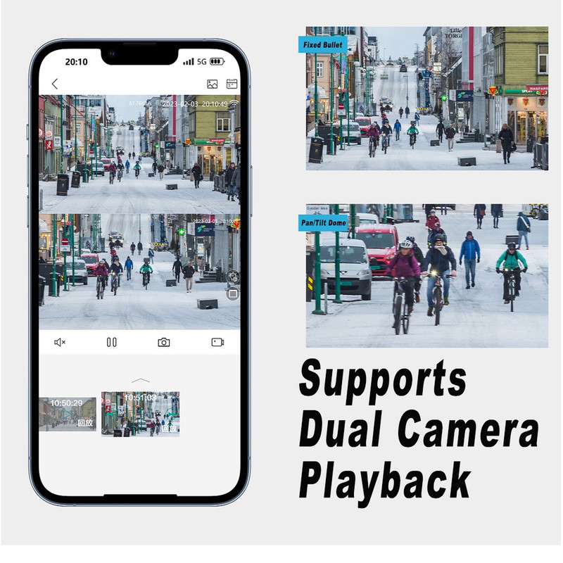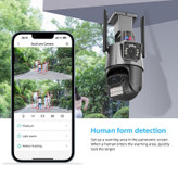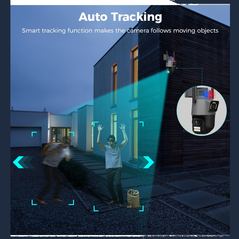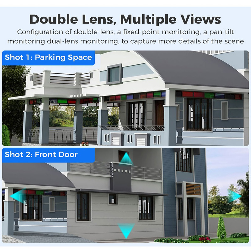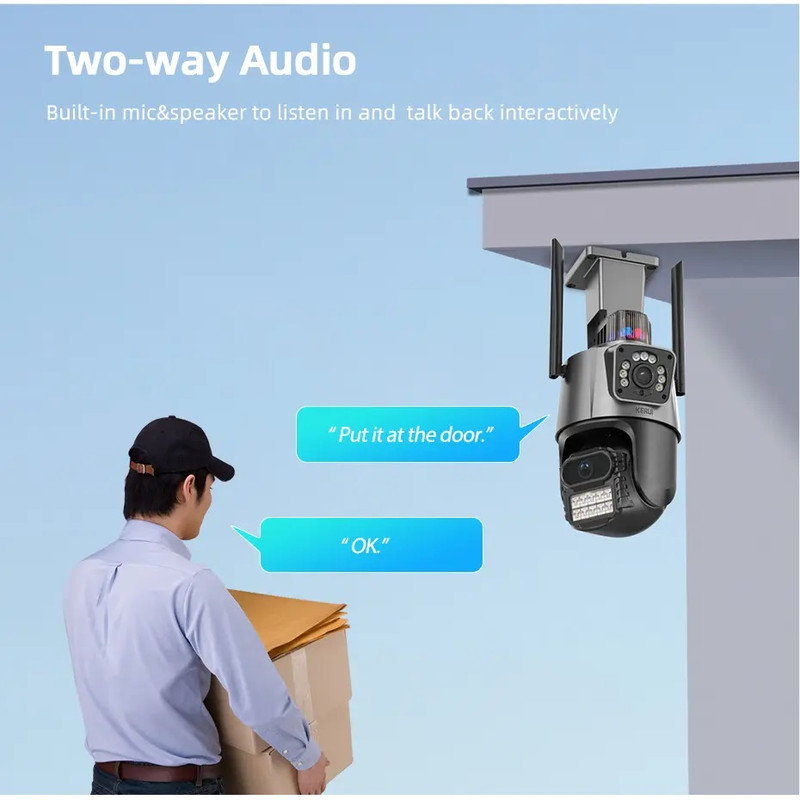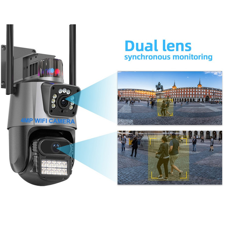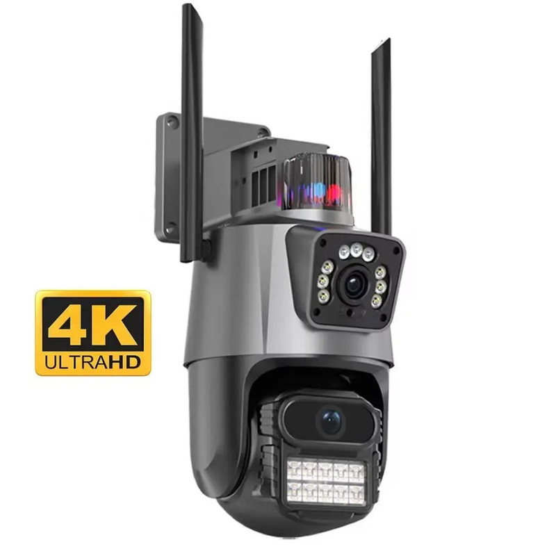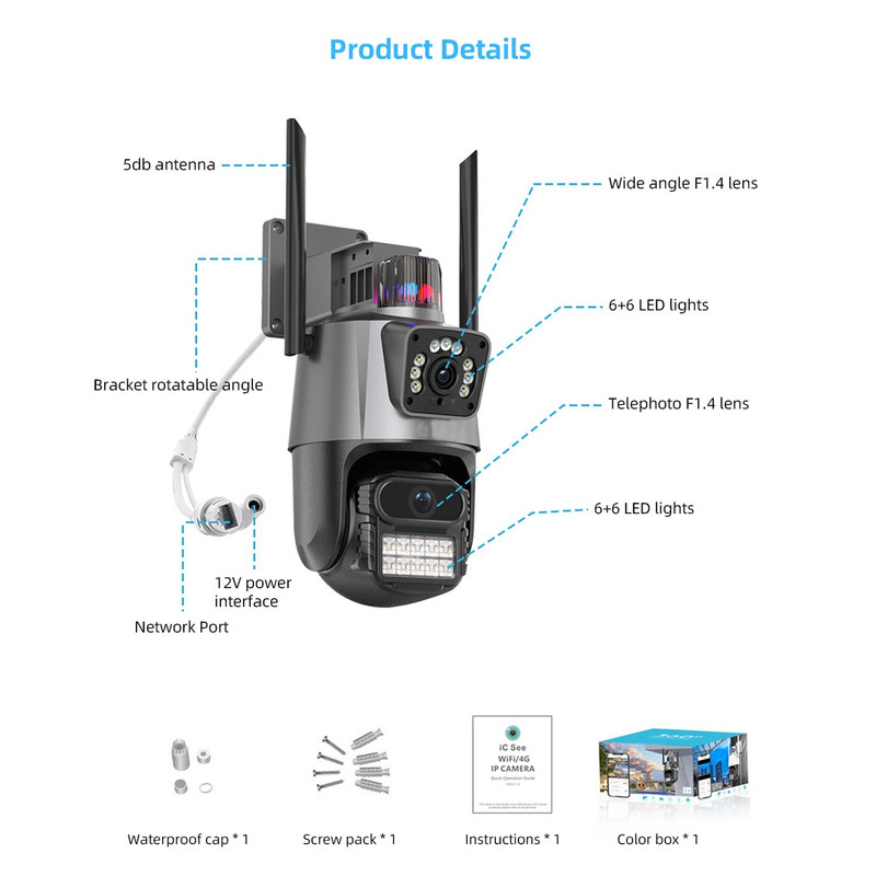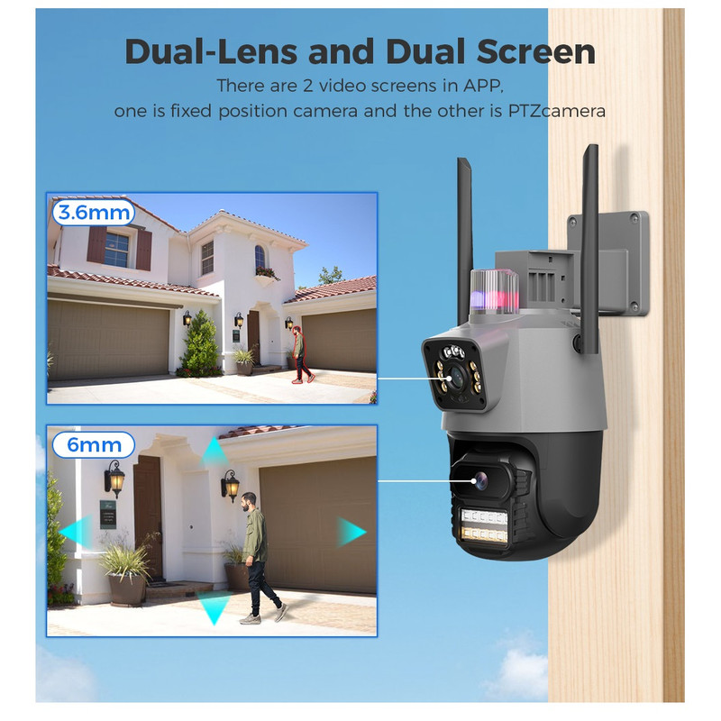 دوربین امنیتی هوشمند با لنز دوگانه بی سیم با ردیابی هوش مصنوعی با 8X زوم 4 و 8 مگاپیکسلی بهمراه وای فای با دو لنز و زنگ هشدار iCSee 2K ، دوربین مدار بسته امنیتی بی سیم دوربین IP PTZ محبوب برای فضای باز و سرپوشیده ، طراحی جدید سیستم امنیتی خانه هوشمند به شمار می رود. از ویژگی های خاص آن : دید در شب، صدای دو طرفه، تشخیص حرکت، تشخیص صدا، ردیابی حرکت انسان، ضد آب / ضد آب و هوا، PAN-TILT، کم مصرف ، با یک لنز ثابت و یک لنز چرخشی، پشتیبانی از مشاهده از راه دور دو نما به طور همزمان ، حرکت: 270 درجه شیب: 90 درجه ، پشتیبانی از پایه های دوربین چند منظوره از انواع روش های نصب دیواری و سقفی ، پشتیبانی از کارت و ذخیره سازی ابری.، مجهز به نورافکن و هشدارهای قرمز و آبی ،قابلیت چرخش 90 Tilt و قابلیت چرخش 340 Pan ،دو لنز و صفحه نمایش دوگانه ، و دارای گواهینامه های کیفیت ROHS - FCC - CE میباشد. تابع : ضد آب / ضد آب و هوا، دید در شب، تنظیم مجدد، میکروفون داخلی، صدای دو طرفه، PAN-TILT را شامل میشود.