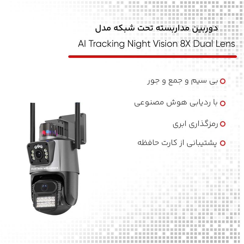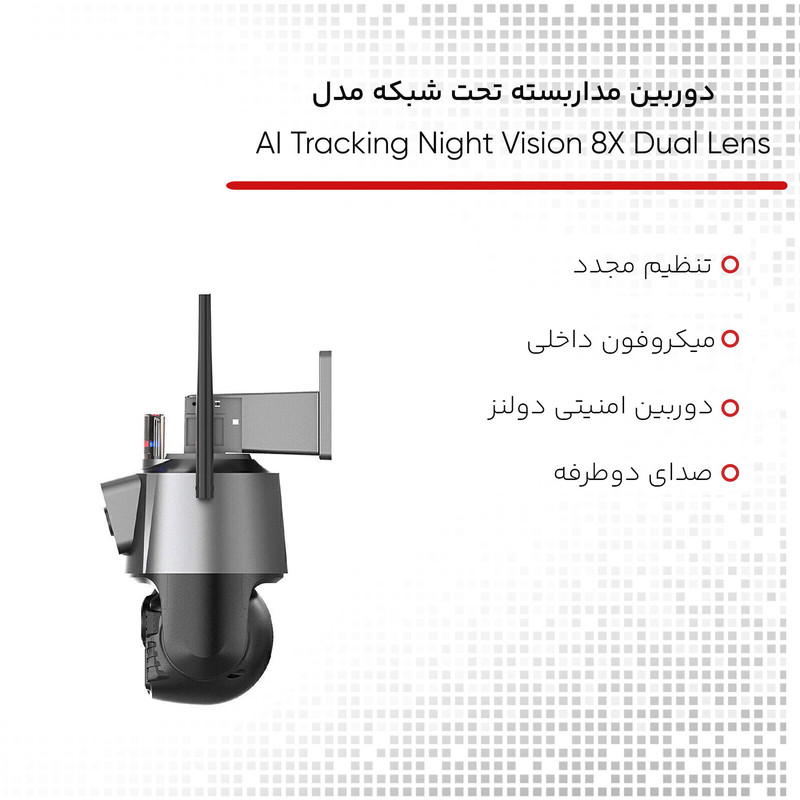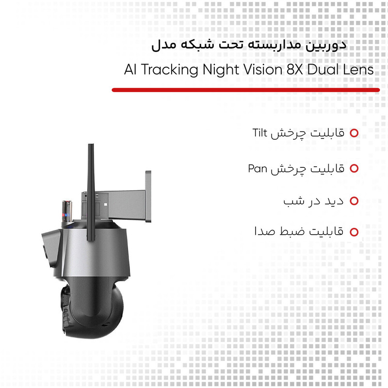 دوربین مداربسته تحت شبکه مدل AI Tracking Night Vision 8X Dual Lens
