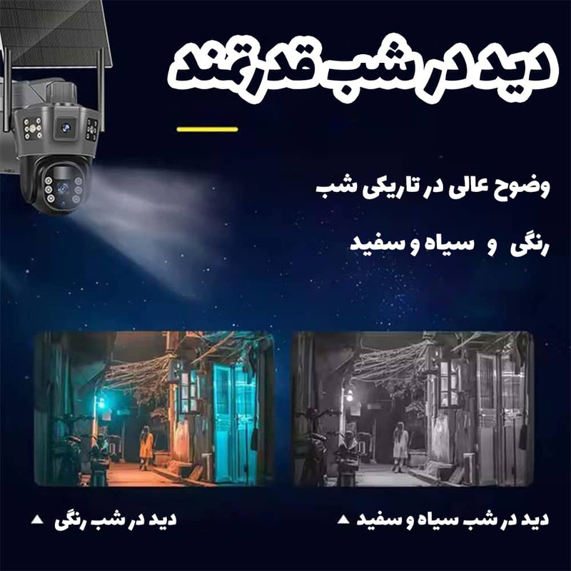 دوربین مداربسته خورشیدی 4G با لنز 3 مگاپیکسل، یک انتخاب عالی برای نظارت محیطی است که امکانات پیشرفتهای را برای افزایش امنیت ارائه میدهد. این دوربین با پشتیبانی از دستگاههای آیفون و اندروید، به شما امکان میدهد از هر جایی که هستید، محیط را کنترل کنید. کیفیت تصویر و لنزها: دوربین با لنز 3 مگاپیکسلی و رزولوشن 1080×1920، تصاویری با کیفیت بالا ارائه میدهد. لنزهای 2.8mm و 4mm میدان دید گستردهای را فراهم میکنند. با 10 برابر زوم دیجیتال، میتوانید جزئیات بیشتری از فاصله دور مشاهده کنید. دید در شب با دو حالت: این دوربین دارای دو حالت دید در شب است: مادون قرمز (IR-cut) برای نمایش سیاه و سفید در شب و حالت وارم لایت برای نمایش رنگی. تا متراژ 50 متر مربع، دید در شب این دوربین عملکرد بسیار خوبی دارد و تصاویر دقیق و شفاف ارائه میدهد. زاویه دید و چرخش کامل: این دوربین با زاویه دید 360 درجه افقی و 90 درجه عمودی، پوشش کامل از محیط را تضمین میکند. ویژگی تعقیب سوژه به طور خودکار حرکت را تشخیص میدهد و آن را دنبال میکند تا هیچ چیزی از دید شما پنهان نماند. حافظه و ذخیرهسازی: امکان پشتیبانی از کارت حافظه تا 128 گیگابایت، فضای کافی برای ذخیره تصاویر و ویدیوهای ضبط شده فراهم میکند. مقاومت در برابر شرایط محیطی: بدنه پلاستیکی مرغوب با گواهی ضدآب IP66، این دوربین را برای استفاده در فضای باز مناسب میسازد. مقاومت در برابر آب و گرد و غبار، دوربین را در برابر شرایط مختلف محیطی محافظت میکند. منبع تغذیه خورشیدی و کنترل از راه دور: با پنل خورشیدی و تغذیه 5 ولت، این دوربین به برق شهری نیازی ندارد. با استفاده از نرمافزار OKAM Pro میتوانید از هر نقطهای تصاویر زنده را مشاهده و کنترل کنید. ویژگیهای هوشمند: این دوربین با ویژگیهایی همچون چرخش افقی و عمودی، تعقیب و کشف حرکت، نظارتی هوشمند و مطمئن را فراهم میکند. با ترکیب قابلیتهای پیشرفته و طراحی مقاوم، این دوربین مداربسته خورشیدی یکی از بهترین گزینهها برای نظارت محیطهای بیرونی است.