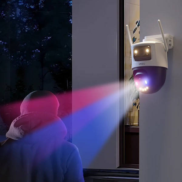 دوربین مینی اسپیددام گردان آیمو Cruiser Dual 2 با داشتن دو لنز و قابلیت ضبط تصاویر به صورت همزمان با استفاده از این دو لنز، یک دوربین خاص به شمار میرود. یکی از این لنز ها ثابت و دیگری گردان است و وجود این دو لنز در یک دوربین باعث میشود کمترین نقطه کور در این دوربین وجود داشته باشد و هر تهدید یا سوژه ای به راحتی در دو قاب تصویر دوربین قرار بگیرد. وجود چراغ های هشدار دهنده آبی و قرمز در این دوربین، یکی از ویژگی های بازدارنده ای است که امنیت محیط را چند پله افزایش میدهد. این چراغ ها که چراغ پلیسی نیز نامیده میشوند برای جلوگیری از پیشروی بیشتر سارقان بسیار کارآمد هستند. این دوربین دارای تکنولوژی های تشخیص انسان، صدای دوطرفه، تشخیص حرکت، ارسال هشدار هوشمند و دید در شب میباشد. همچنین پشتیبانی از کارت حافظه تا 512 گیگابایت ذخیره تصاویر روی این دوربین را تا مدت زمان زیادی امکان پذیر میکند. آیمو در این دوربین از الگوریتم های هوش مصنوعی برای تشخیص انسان و... استفاده کرده که این ویژگی ها این محصول را به محصولی کاملا هوشمند تبدیل میکند