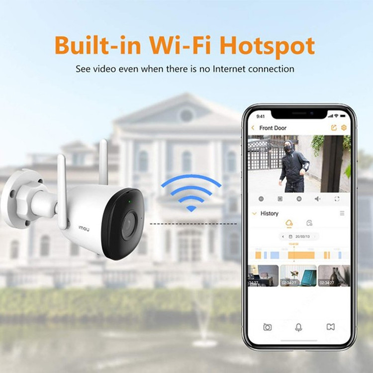 دوربین بیسیم مدل Imou Bullet 2E IPC-F22FP قابلیت فوق العاده دید در شب رنگی، تشخیص انسان با هوش مصنوعی، هشدار بازدارنده نور فلش و هات اسپات داخلی را دارد. این دوربین دارای استاندارد Ip67 میباشد و میتواند در محیط های بیرونی، بدون مشکل مورد استفاده قرار بگیرد.
