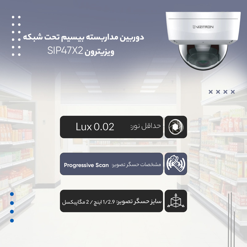 دوربینهای امنیتی و نظارتی از محصولات پرفروش و پرطرفدار هستند که میتوانند در امکان نیازمند به نظارت مورد استفاده قرار گرفته و بسیار کاربردی و مهم باشند. این دوربینها امروزه توسط شرکتهای مختلفی تولید میشوند و در بازههای قیمتی مختلف در دسترس قرار دارند. شرکت ویزیترون از شرکتهای مطرح در این زمینه است و دوربین مداربسته تحت شبکه ویزیترون مدل VZ-SIP47X2-WIFI از محصولات پرطرفدار این شرکت به شمار میرود. این دوربین مدار بسته با پشتیبانی از اینترنت بیسیم میتواند مورد استفاده قرار بگیرد و همچنین از کارت حافظههای MicroSD تا ظرفیت 512 گیگابایت پشتیبانی میکند. وضوح تصویر قابل پشتیبانی در این دوربین معادل 1920x1080 با سرعت 30 فریم بر ثانیه بوده و لنز ثابت با حسگر 1/2.9 اینچی و 2 مگاپیکسلی برای آن در نظر گرفته شده است. از دیگر ویژگیهای این دوربین میتوان به استاندارد IP67IK10 اشاره کرد.