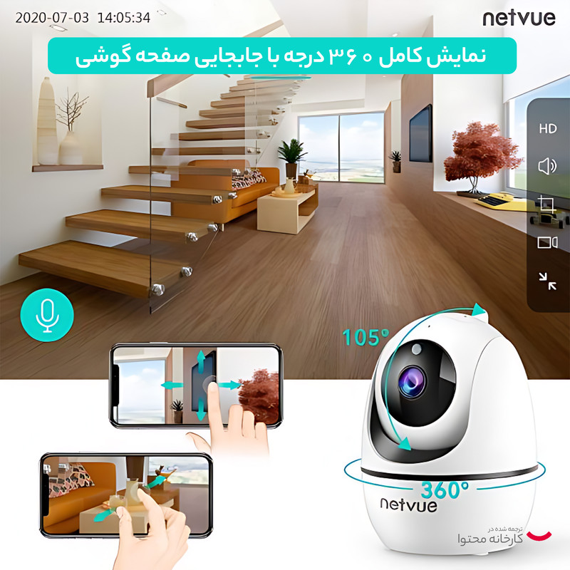 دوربین امنیتی Netvue Obr mini یک دوربین سطح بالا و هوشمند است که برای استفاده خانگی طراحی شده است و به موبایل های اندرویدی و iOS وصل می شود. این دوربین با قابلیت چرخش 360 درجه ای خود دید کاملی از فضای مورد نظر به شما می دهد و هیچ چیزی از جلو چشمتان پنهان نمی ماند. این دوربین برای استفاده در اتاق کودک بسیار مناسب است و می توانید با خیال راحت فرزند دلبندتان را در اتاقش تنها بگذارید و در هنگام خواب از دور مراقباش باشید. دید در شب، پشتیبانی از کارت حافظه، تشخیص حرکت، تبادل صدای دوطرفه و ... از ویژگی های بسیار جذاب این دوربین است.
