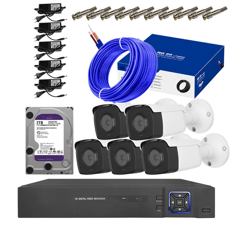 پکیج امنیتی AHD شامل پنج دوربین بالت مداربسته AHD دو مگاپیکسلی (ضد آب و دارای دید در شب) مناسب محیط داخلی و فضای بیرون ، یک عدد دستگاه ضبط DVR هشت کانال و هارد دوترابایت وسترن دیجیتال بنفش و پنج عدد آداپتور 2 آمپر باکیفیت و 25 متر کابل ترکیبی مغزی 0.7 مس (شامل کابل برق+RG) و 10 عدد فیش BNC می باشد. دستگاه موجود در این پکیج قابلیت پشتیبانی از 8عد دوربین اچ دی ویا فول اچ دی و 16عدد دوربین IP تحت شبکه را دارد. مناسب جهت استفاده در فروشگاهها ، منازل مسکونی و شرکتها و... میباشد و محدودیتی برای نصب ندارد. توجه داشته باشید برای نگهداری و ضبط تصاویر یک عدد هارد در پکیج قرار داده شده که قابلیت ماندگاری فیلم تا بیش از 40 روز را دارد. برنامه ی ضبط بر اساس حساسیت حرکتی یا بازه زمانی یا ثبت چهره ویا ضبط دائم قابل تنطیم میباشد. این پکیج قابلیت تشخیص چهره و ثبت تصاویر را دارا میباشد. همچنین قابلیت دیگر این پکیج ، قابلیت هشدار تشخیص حرکت میباشد که بصورت پیغام به شما اعلام می نماید. ضمنا دستگاه استفاده شده در این پکیج دارای 4ورودی میکروفون برای ضبط صدا میباشد. این پکیج از نوع AHD است که یک عدد هارد دیسک داخلی تا ظرفیت 14 ترابایت را پشتیبانی می کند. کیفیت تصویر این محصول 1080P است. دوربین های موجود در این پکیج از نوع AHD بوده و این امکان را به شما می دهد که تصاویر با کیفیتی به صورت شبانه روز در اختیار داشته باشید و لنز دوربین ها 3 مگاپیکسلی و حسگر استفاده شده 2 مگاپیکسل است. این سیستم امنیتی شامل 25 متر کابل ترکیبی و فیش های مورد نیاز در آن میباشد. در این پک از 5 عدد آداپتور 2 آمپر با خروجی ثابت 2.2 آمپر جهت تامین برق دوربین ها استفاده شده است. دستگاه DVR دارای خروجی های VGA و HDMI و AV میباشد که میتواند بدون محدودیت به تمام تلویزیون ها و مانیتورها متصل شود و خروجی تصویر داشته باشد. همچنین این دستگاه از نرم افزار Android و IOS پشتیبانی میکند تا بتوانید تصاویر دوربین ها را بدون محدودیت در زمان و مکان روی موبایلهای خود داشته باشید (هم تصاویر بصورت آنلاین و هم تصاویر ضبط شده). قابلیت مهم دیگر این پکیج , پشتیبانی از دانگلهای وای فای میباشد برای برقراری ارتباط بیسیم با مودم وای فای جهت انتقال تصویر.