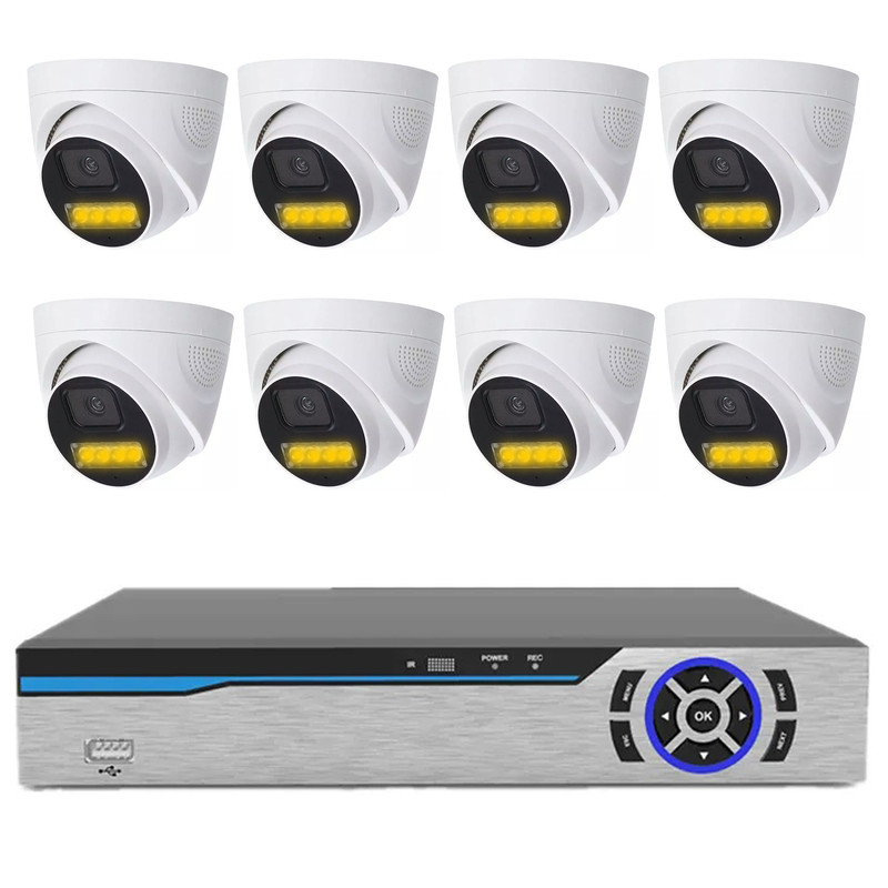 با تهیه پکیج فوق گام بلندی در جهت تامین امنیت محل مورد نظر خود بردارید و کار خود را آسان کنید و با خیال راحت سفر کنید. پکیج سیستم امنیتی نظارتی فوق دارای 8 عدد دوربین مداربسته دام سقفی وارم لایت ( دید در شب رنگی ) با رزولوشن 2 مگاپیکسل با بدنه ی کالیت آب میباشد.این دوربین دارای قابلیت دید درشب نیز میباشد.این دوربین قابلیت نصب در محیط های داخلی نیز دارا میباشد. این پکیج شامل 1 عدد دستگاه ضبط FULL HD دارای 8 عدد خروجی تصویر ، دارای نرم افزار انتقال تصاویر روی گوشی رایگان،دارای منوی فارسی و کاربری کاملا آسان،قابلیت تشخیص حرکت انسان جلوی دوربین،دارای تقویم شمسی و بسیاری از امکانات دیگرنیز میباشد. قابلیت پشتیبانی از 1 عدد هارد اینترنال تا ظرفیت 4 ترا بایت. همچنین شامل تجهیزات اتصالات و آداپتور مورد نیاز میباشد. کابل و هارد بر اساس نیاز پروژه بصورت جدا گانه باید تهیه گردد. کاربرد و استفاده ی این پکیج جهت استفاده در هر نوع مکانی : اداری،مسکونی،تجاری،پارکینگ ها،باغ،ویلا و ... نیز کاربرد دارد و همچنین مورد تایید سازمان اماکن نیز میباشد.