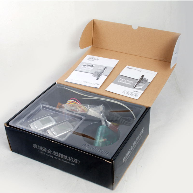 اقلام همراه : دو عدد ریموت تصویری - کیت اصلی - دسته سیم کشی - آنتن - نشانگر LED - رله قطع برق - شارژر فندکی - آژیر - سیم بندی - راهنمای نصب