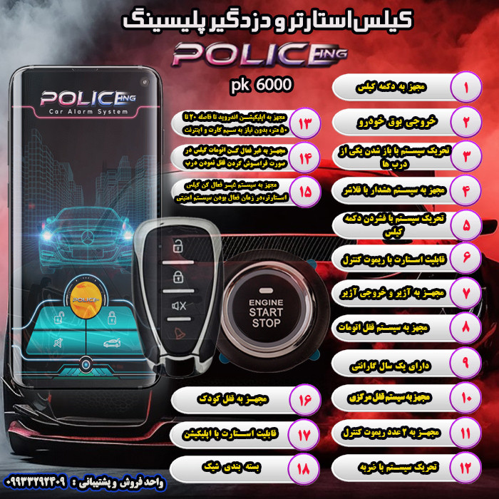 کیلس استارتر و دزدگیر خودرو پلیسینگ مدل pk 6000