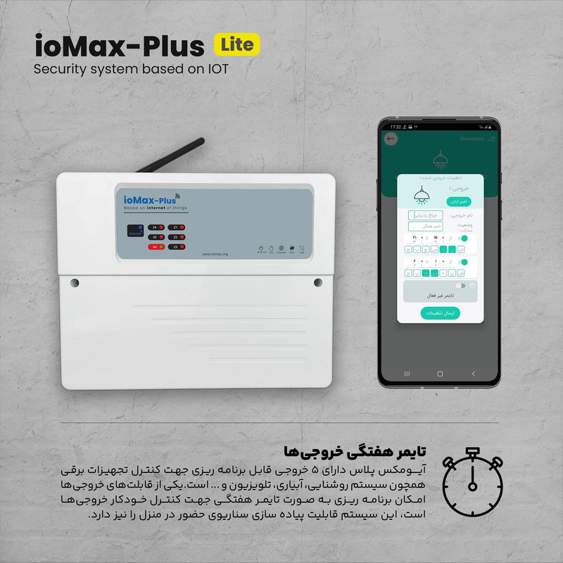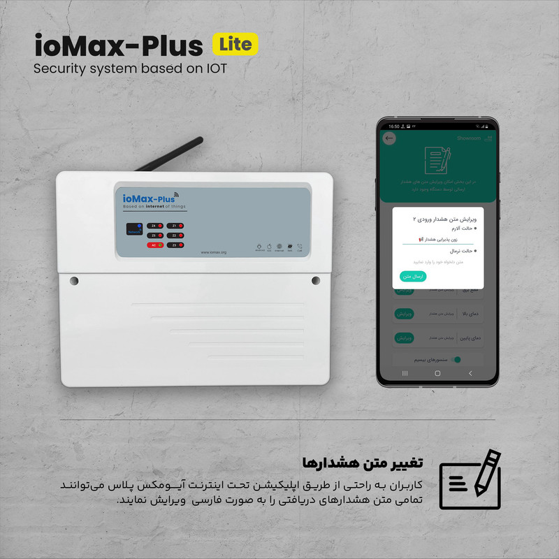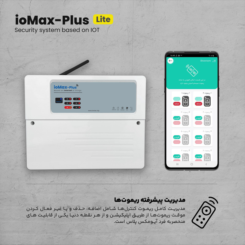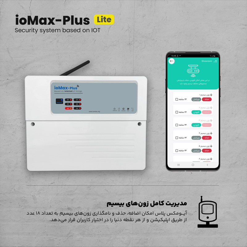 دزدگیر اماکن ioMax-Plus Lite ورژن جدید سری دزدگیرهای ioMax است که شامل بروزرسانیهایی همچون افزایش تعداد زونها باسیم، حذف آداپتور خارجی، تقویت قسمت شارژر باتری، امکان قرارگیری باتری پشتیان در باکس اصلی، تفاوت ioMax-Plus Lite با مدل ioMax-Plus در تعداد خروجیها جهت کنترل تجهیزات برقی و خروجی مربوط به بلندگو است. همانگونه که میدانید دزدگیر ioMax نسل جدید سیستمهای امنیتی بر پایه اینترنت اشیاء (IOT) است که همواره به صورت آنلاین از طریق اپلیکیشن آیـــومکس امکان کنترل و انجام کلیه تنظیمات مورد نیاز کاربران را در محیطی ساده و جذاب فراهم مینماید. در اصل ویژگی متمایز آیومکس کاربری ساده و امکان نصب و راهندازی توسط کاربر است که علاوه بر صرفه جویی در هزینه امکان اعمال تنظیمات دلخواه در هر لحظه را برای کاربر فراهم مینماید.