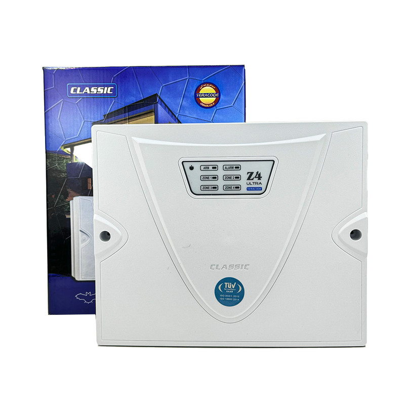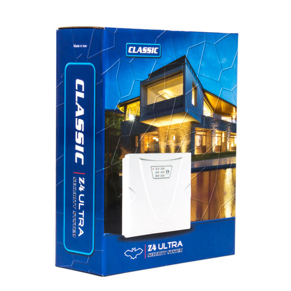 دزدگیر کـلاسیـک +Z4 ULTRA GIGACODE 64 یکی از مدلهای جدید سیستـم هـای حفاظتی اماکن در کشورمی باشد. استفاده از سیستم ریموت کدینگ از مزایای این دزدگیر اماکن می باشد. امکانات پیشـرفتـه دستگـاه و سـادگـی نصب و استفاده از آن، موجب شده تا Z4 منـاسـب حفـاظـت از کلیـه اماکن مسکونی ، اداری ، تجاری ، بانک ها و جواهر فروشی ها باشد. این دستگاه دارای 4 زون (منطقه) می باشد که می توان به آن چشمی با سیم و یا مگنت و انواع سنسور های دزدگیر را به آنها وصل نمود. همچنین این مرکز دزدگیر از چشمی های بی سیم با فرکانس 433.92 مگاهرتز پشتیبانی می شود که پیشنهاد کلاسیک برای این چشمی دزدگیر وایرلس Fox2 می باشد. دزدگیر کلاسیک Z4 به همراه دو عدد ریموت می باشد که می تواند از فاصله حداکثر 100 متری دستگاه را فعال و غیر فعال نمود. این دستگاه را می توان به انواع تلفن کننده های معمولی و یا سیم کارتی کلاسیک و یا سایر برندها متصل کرد. ضمن آن که با اتصال این دزدگیر به تلفن کننده سیم کارت خور G1 قابلیت هایی اضافه می شود که بسیار کاربردی است که مهمترین آن فعال و غیر فعال کردن دزدگیر از راه دور به وسیله تلفن همراه از طریق SMS یا اپ اختصاصی کمپانی کلاسیک می باشد. قابلیت دیگری که می توان از آن نام برد دارا بودن 4 رله جداگانه است که می توان فرمانهای جداگانه ای به دستگاههای برقی محل نصب دزدگیر ارسال کرد. به طور مثال می توان درب برقی دفتر یا محل کار را از راه دور باز نمود.