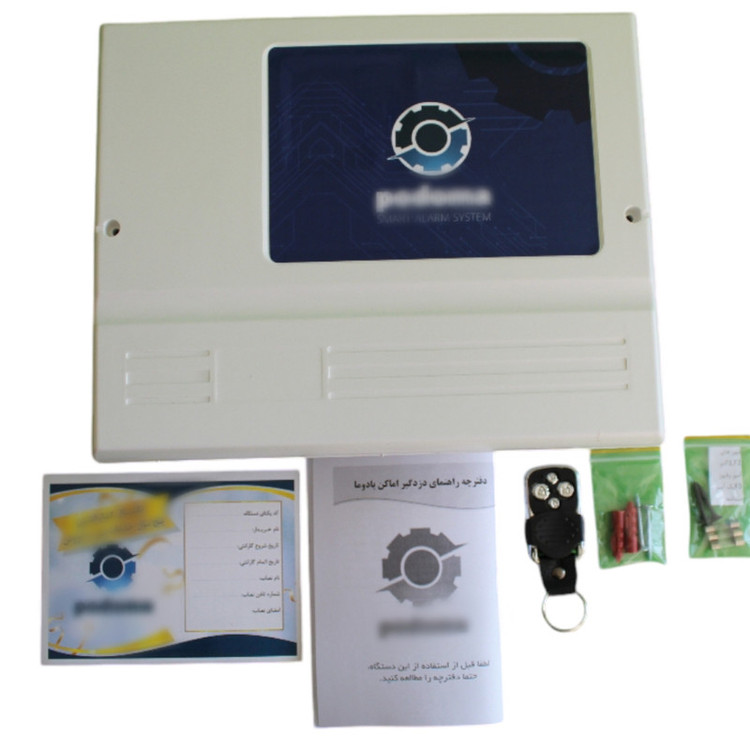 اقلام موجود در پکیج دستگاه هوشمند دزدگیر پادوما: یک عدد باطری 4.5 آمپر یک عدد سنسور چشمی یک عدد سیرن (آژیر) می باشد.