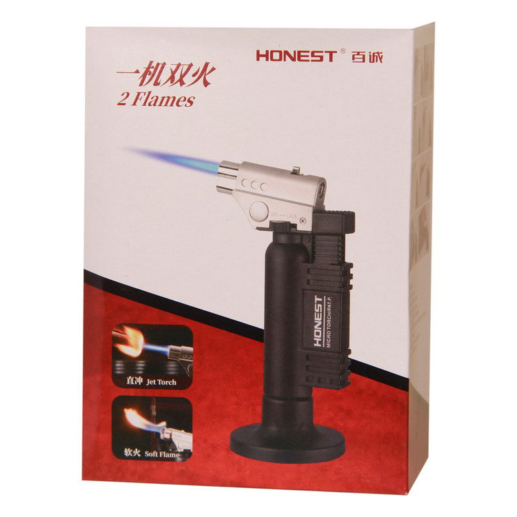 فندک ایستاده هانست دو حالته اتمی و شعله برای انواع تعمیرات طلا و جوشکاری انواع لولههای مسی و غیره دارای قفل کردن شعله دکمه در کنار دسته وجود دارد مخزن فشرده برای استحکام بیشتر داری پایه برای کار کردن راحتر می باشد.