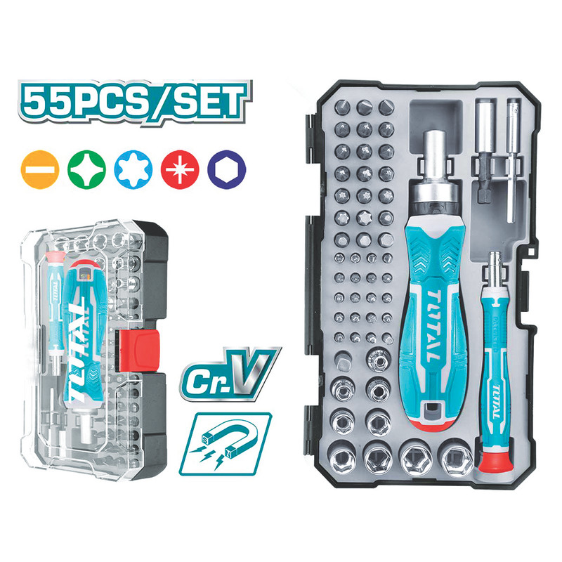 پیچ گوشتی و سری پیچ گوشتی و بکس توتال مدل TACSD30556 مجموعه 55 عددی