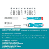 ست پیچ گوشتی و سر پیچ گوشتی 55 عددی توتال مدل TACSD30556 یک ست 55 عددی پیچ گوشتی است که برای انواع پیچ طراحی شده . این ست شامل بیت های دوسو ، چهارسو ، ستاره ای و آلن است و با مکانیزم جغجغه ای خود سرعت کار را افزایش میدهد . دسته ارگونومیک و ضد لغزش آن استفاده طولانی مدت را راحت و ایمن میکند . برند توتال به داشتن محصولاتی با دوام و با کیفیت شناخته میشود که این ست پیچ گوشتی نیز از این قاعده مستثنی نیست . برند توتال یک کمپانی جهانی میباشد که با استفاده از تکنولوژی های روز دنیا و رعایت استانداردهای صنعتی روز دنیا محصولات خود را تحت لیسانس آمریکا در کشور چین تولید کرده و به تمامی کشور های جهان از جمله کشور های اروپایی صادر میکند که به این واسطه دارای استاندارد CE اروپا نیز میباشد . ست پیچ گوشتی و سر پیچ گوشتی جغجغه ای 55 عددی توتال مدل TACSD30556 تحت بررسی کارشناسان فنی ابزار باطن قرار گرفته است و اگر بخواهیم نتیجه این بررسی را به صورت کلی با شما به اشتراک بگذاریم ، این محصول با کیفیت ساخت بالای خود ، طراحی ارگونومیک و دوام بالا ، انتخابی عالی برای کارگاه ها و پروژه های صنعتی و خانگی است . این محصول دارای 21 عدد بیت PH1 . PH2 . PH2 . PH2 . PH3 . SL4 . SL5 . SL6 . HEX3 . HEX4 . HEX5 . HEX6 . PZ1 . PZ2 . PZ3 . T10 . T15 . T20 T25 . T30 . T40 و 20 عدد بیت ساعتی PH000 . PH00 . PH0 . PH1 . SL1.5 . SL2 . SL2.5 . SL3 . HEX1.5 . HEX2 . HEX2.5 . HEX3 . HEX4 . T6 . T7 . T8 . T9 . T10 . T15 . T20 و 9 عدد بیت بکس 4 . 5 . 6 . 7 . 8 . 9 . 10 . 11 . 12 میلیمتر و 1 عدد رابط بیت ساعتی و یک عدد پیچ گوشتی بیت خور ساعتی و یک عدد پیچ گوشتی بیت خور جغجغه ای و 1 عدد رابط سر دریلی و 1 عدد رابط بکس که همراه یک کیف قابل حمل پلاستیک فشرده که تمامی این محصولات را داخل خود جای داده ارسال میشود . شما برای بررسی بیشتر این محصول میتوانید به ابزار باطن مراجعه کنید .