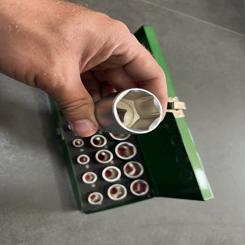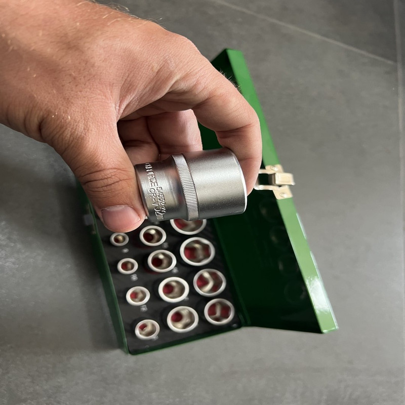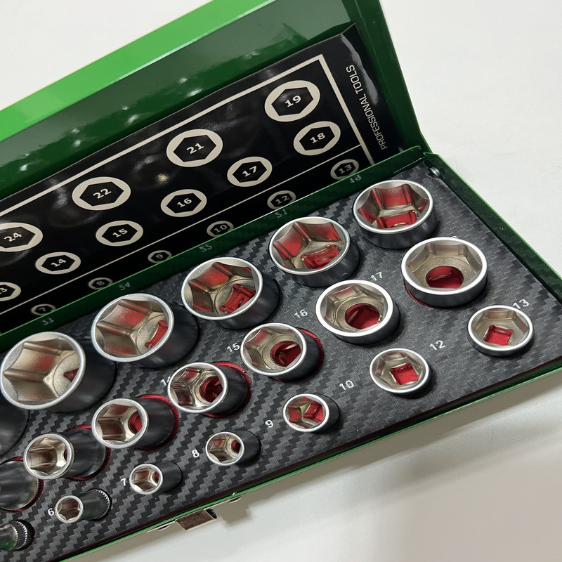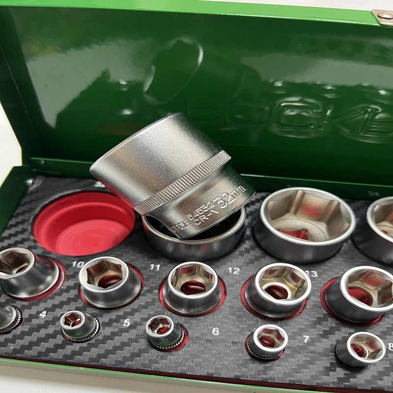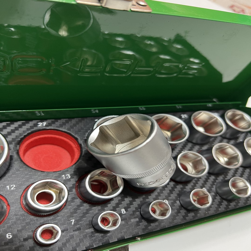 جعبه بکس یک دوم فوق یک مجموعه 25 عددی از بکس های راک فورس تایوان می باشد.این مجموعه دارای بکس های از سایز 4 میلیمتر الی 32 میلیمتر بوده است.بکس های موجود در این مجموعه درایو 1/2 و 1/4 بوده و از کیفیت ساخت بسیار بالای برخوردار است.جعبه فلزی این جعبه بکس بسیار ضخیم و شیک می باشد و داخل بسته بندی عالی می باشد.