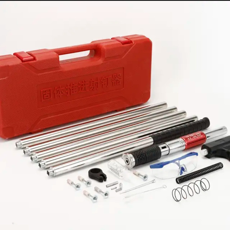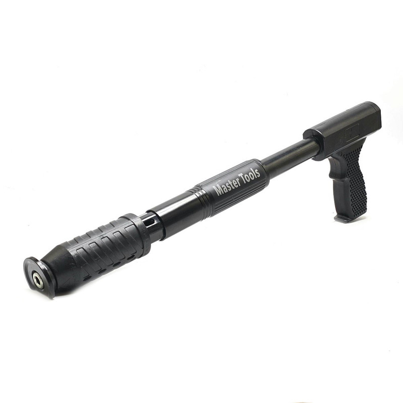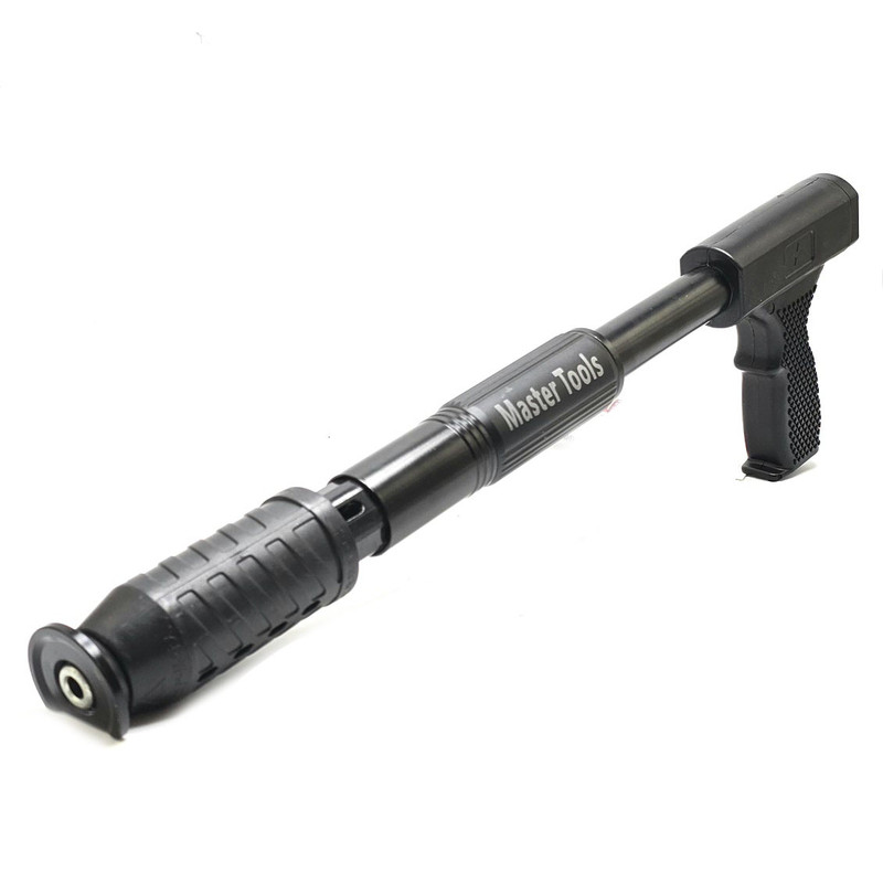 میخکوب دستی ( فشاری ) چاشنی سرخود مستر تولز با ارتفاع 3.2 متر : میخکوب فوق دارای 5 عدد لوله اتصال جهت بالا بردن ارتفاع تا 3.2 متر معادل 320 سانتی متر تشکیل شده است که می توانید از ارتفاع 50 سانتی متر تا 320 سانتیمتر طول آن را عوض کنید. این میخکوب جهت فرو کردن میخ به انواع مصالح همچون آهن ،سیمان و بتن ، سنگ ، چوب و ... ساخته شده است که به راحتی یک فشار این عمل اتفاق می افتد به همراه این دستگاه تعداد 50 عدد میخ 6.5 سانتی مخصوص همین دستگاه موجود می باشد که در صورت نیاز بیشتر به میخ می توانید از طریق همین فروشگاه اقدام فرمایید .در نظر داشته باشید . باید میخ 6.5 سانت تهیه فرمایید.به همراه این دستگاه جند قطعه یدکی همچون فنر و سوزن و نیز روغن دان جهت روغنکاری و نیز فرچه و عینک قرار دارد.