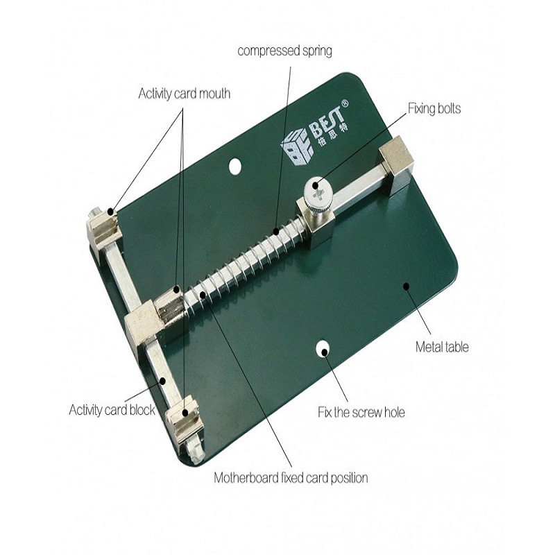 گیره سه فک BEST مدل M001 یک گیره نگهدارنده مخصوص برد های موبایل میباشد و با دو عدد پیچ یا میخ روی میز یا محل کار محکم میشود. اندازه فک در حالت باز 65 میلی متر میباشد.