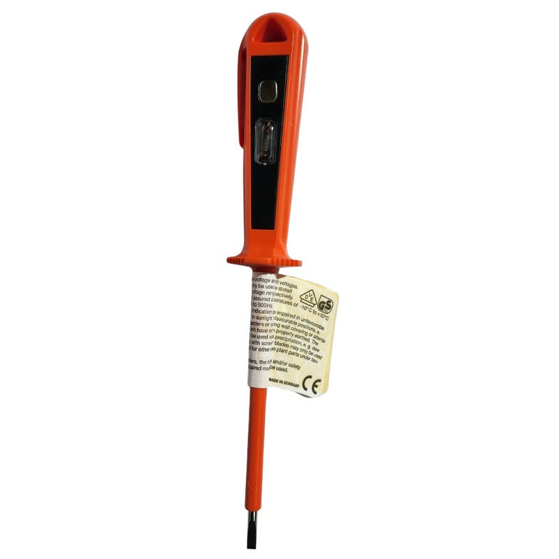 فازمتر «یورو فاز تستر» مدل HKR 185 یکی از بهترین فازمتر های موجود می باشد که از محصولات قدیمی ساخت کشور آلمان می باشد و شرکت نووا دقیقا از روی آن کپی نموده و فازمتر بسیار باکیفیتی میباشد که لامپ های خود را از این شرکت آلمانی تهیه می نماید که از طراحی زیبا و استانداردی برخوردار است. در میان ابزارآلات هر صنعتی، برخی از ابزارها نه تنها از ابزارهای ضروری به شمار میروند بلکه برای آنها جایگزینی نمیتوان یافت. ابزار فازمتر برای خیلی از افراد، بویژه آن دسته که به نوعی با جریان برق سروکار دارند یکی از این ابزارهای ضروری محسوب میشود. این ابزار نه تنها به منظور تست و اطمینان از وجود جریان برق در یک مدار یا مسیر کاربرد دارد، بلکه در ایمنی کار با جریان یا دستگاههای برقی نیز کاربرد فراوانی دارد. فازمتر «یورو فاز تستر» مدل HKR 185 با سری پیچگوشتی دو سو و بدنه پلاستیکی از جنس PU تولید شده است که قابلیت تست گستره مناسبی از جریان برق را دارد. تیغه کاملا پوشیده شده طبق استاندارد VDE و همچنین برخورداری از میله با نوک سخت کاری شده از دیگر مشخصات این پیچگوشتی فازمتر است. با توجه به سایز و طول مناسب، کاربر همواره به راحتی میتواند آن را در میان دیگر ابزارهای خود به همراه داشته باشد. این مدل همچنین دارای استاندارد GS آلمان است که نشان از ایمنی محصول دارد. این ابزار یکی از محصولات عرضهشده توسط شرکت «یورو فاز تستر» ساخت کشور آلمان است .