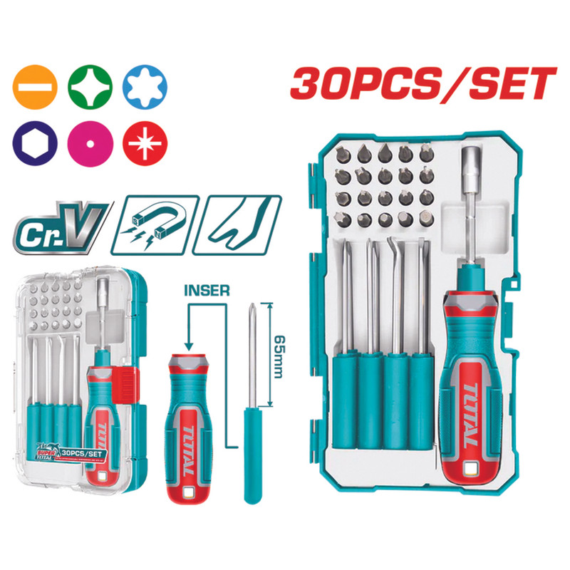پیچ گوشتی و سر پیچ گوشتی توتال مدل TACSD30306 مجموعه 30 عددی