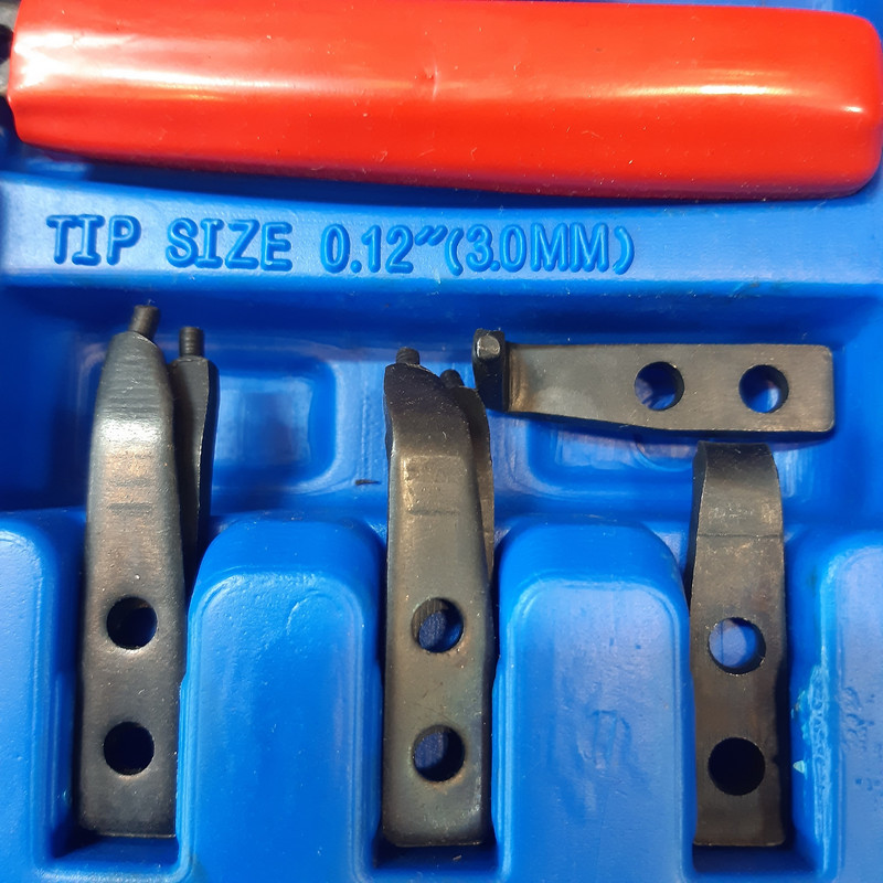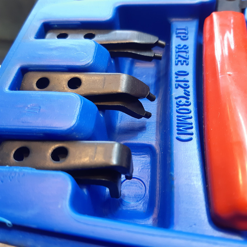 ست انبر خار باز کن و جمع کن فوق یک مجموعه 2 عددی از انبر 10 اینچ می باشد.این انبر از نوع دنده ای بوده است یعنی این حالت دنده ای خود باعث نگهداشتن خار جمع شده و یا ازاد شده می باشد.این مجموعه دارای سری های قابل تعویض بوده و دارای سری ها در اشکال صاف ، 15 درجه ، 45 درجه و 90 درجه می باشد. این مجموعه ساخت شرکت راک فورس تایوان می باشد.