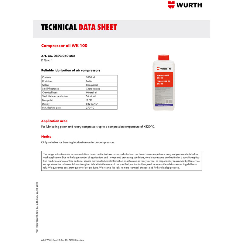 روغن کمپرسور وورث مدل WK 100 حجم 1000 میلی لیتر