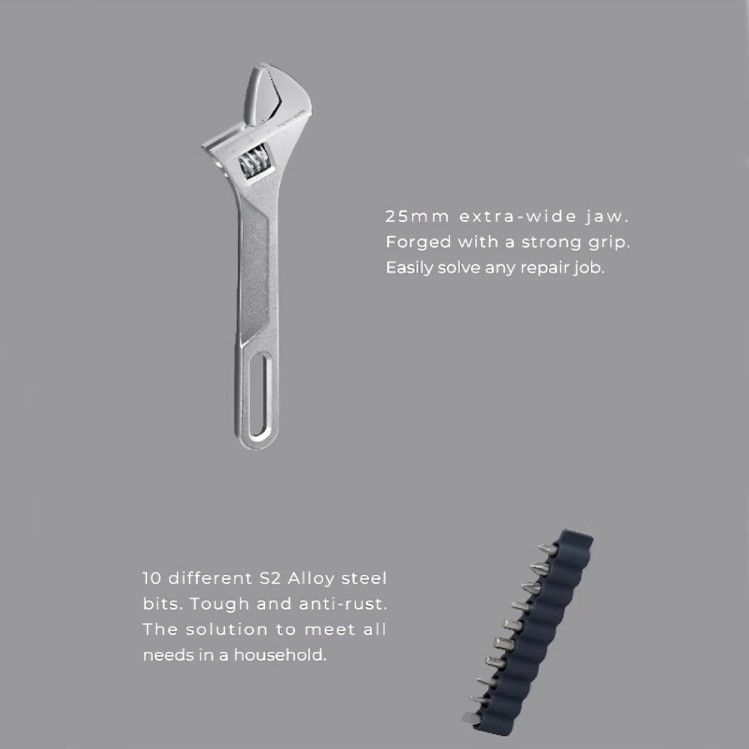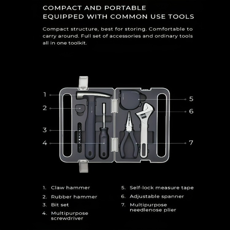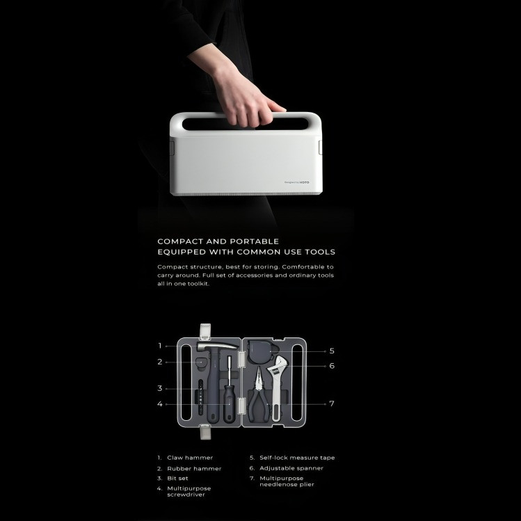 آیا دوست دارید یک پک با کیفیت بالا و جمع و جور داشته باشید ؟ یا شاید تجهیزات الکترونیکی را تعمیر می کنید؟ مجموعه ابزار لوکس و مفید و کاربردی HOTO J02 کار شما را آسان تر می کند. این شامل 7 ابزار UNIVERSAL است که تجهیزات ضروری هر کارگاه است. یک چکش با دستگیره لاستیکی، مجموعه ای از پیچ گوشتیها ، یک متر اندازه گیری به طول 3 متر با عملکرد قفل خودکار، یک آچار قابل تنظیم فرانسه و انبر چند منظوره در یک جعبه بادوام قرار داده شده است. آنها از مواد با کیفیت بالا ساخته شده اند و استفاده راحت را تضمین می کنند.این مجموعه شامل ابزار دستی UNIVERSAL است که در هر خانه و کارگاهی مفید خواهد بود. HOTO J02 شامل یک پیچ گوشتی دستی با نگهدارنده بیت مغناطیسی و همچنین یک متر نواری به طول 3 متر برای اندازه گیری دقیق است. همچنین در جعبه یک آچار قابل تنظیم با عرض فک تا 25 میلی متر، انبردست برای برش یا چین دادن، یک چکش با کلاه لاستیکی و 10 سری پیچ گوشتی از جنس فولاد S2 پیدا خواهید کرد.