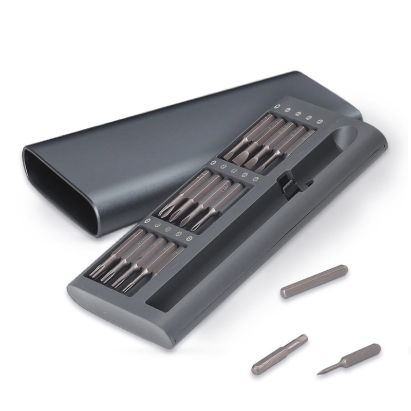 شرکت پاورولوجی در زمینه های مختلفی فعالیت دارد و محصولات متنوع و به روزی تولید می کند. پیچ گوشتی پاورولوجی مدل P31IN1PSGY بسته 31 عددی یکی از محصولات با کیفیت این کمپانی است. پیچ گوشتی پاورولوجی مدل P31IN1PSGY برای کسانی که با این ابزار سر و کار دارند گزینه بسیار مناسبی است و مانع از خرید انواع مختلفی از پیچ گوشتی ها می شود که فضای زیادی را هم اشغال می کنند. پیچ گوشتی پاورولوجی مدل P31IN1PSGY بسته 31 عددی دارای بدنه ای استوانه ای و از جنس آلیاژ آلومنیوم ساخته شده که مقاومت خوبی دارد. فرم این دسته به صورت شیاردار است که برای پیچاندن پیچ ها و کار با پیچ گوشتی خوش دست تر باشد. این محصول با ساختار خوب و تعداد بالای سری پیچ گوشتی که در آن قرار داده شده است، گزینه بسیار مناسبی برای هر خانه است. این دسته و سری ها از جنس استیل ضد زنگ S2 هستند. (استیل S2 نوعی از فلز استیل بوده که از انواع دیگر مرسوم استحکام بیشتر و رسانایی بهتری دارد.) پیچ گوشتی پاورولوجی مدل P31IN1PSGY بسته 31 عددی برای کارهای مختلفی از جمله تعمیرات عینک، محصولات الکترونیکی، اسباببازی، تلفن، لپتاپ، موبایل و غیره مورد استفاده قرار میگیرد. این مجموعه در یک کاور با جنس آلیاژ آلومینیوم قرار دارد. گفتنی است این کاور به صورت کشویی بوده و دسترسی بسیار آسانی به تمامی سریهای پیچگوشتی خواهید داشت.